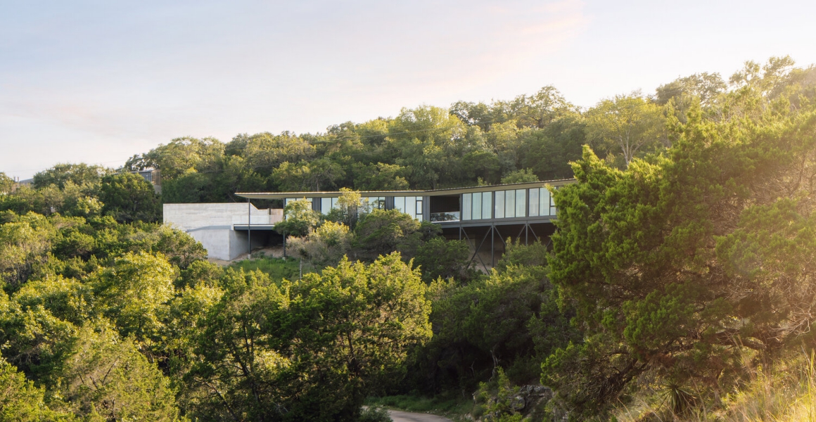 Nhìn ra cảnh sườn đồi rợp bóng cây phía xa, ngôi nhà ngập tràn ánh sáng trời The High Road ở Austin – Texas, là dự án độc đáo vừa được hoàn thành bởi Ravel Architecture. Không gian sống hiện đại này sở hữu hình dạng đặc biệt lấy cảm hứng từ boomerang.