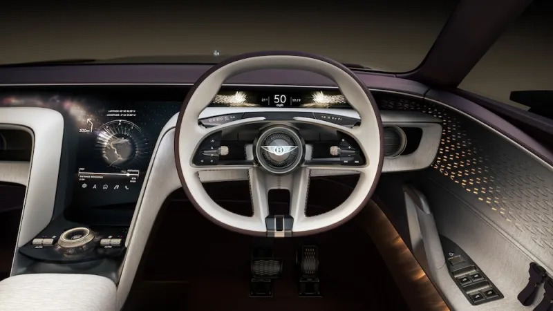 Chất liệu nội thất cũng rất đặc biệt: len thủ công, lụa dệt truyền thống, gỗ quý cùng lưới kim loại phát sáng, tạo cảm giác như đang bước vào một không gian nghệ thuật di động. Điểm nhấn công nghệ là bảng điều khiển có thể “biến mất”, để lộ lớp veneer gỗ dưới nền, và thiết bị cơ học trung tâm độc đáo như một chiếc đồng hồ sống. EXP 15 không phải xe bán ra, mà là cách Bentley kể câu chuyện về một tương lai nơi công nghệ và cảm xúc cùng song hành.