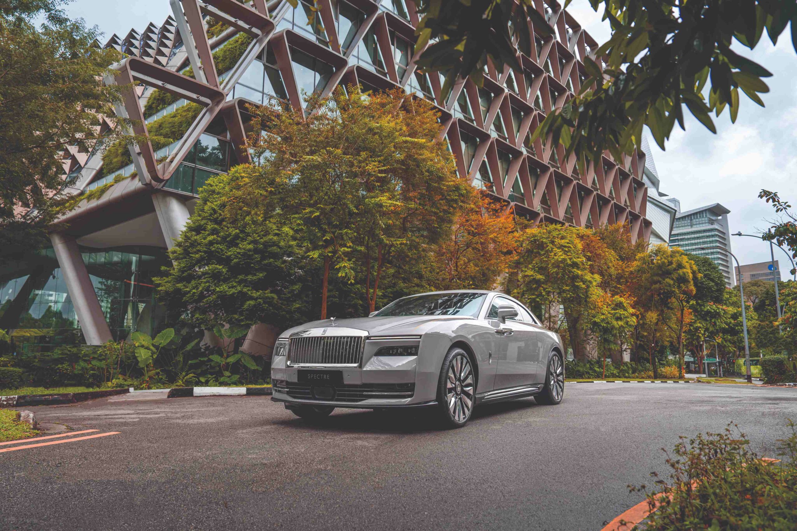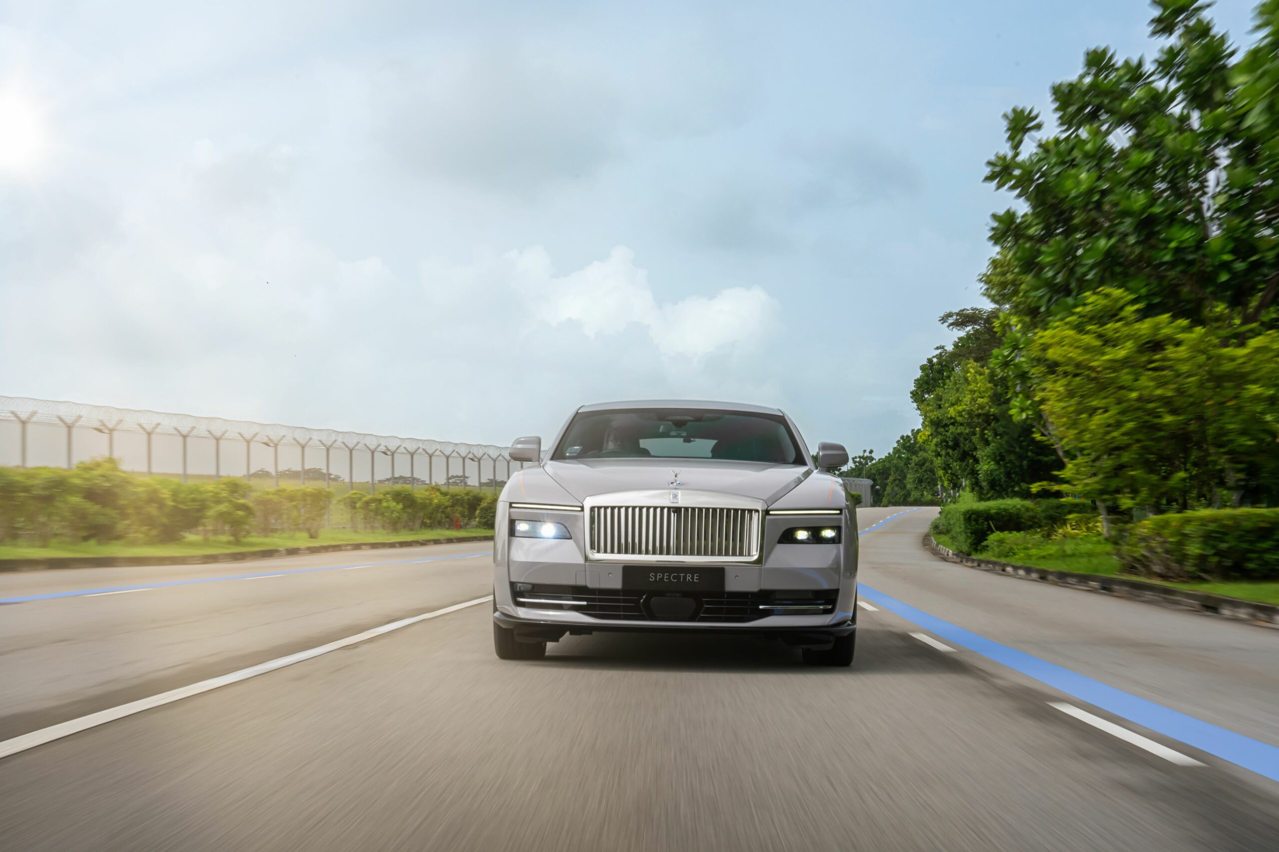 ới mức giá lên đến hơn 2 triệu đô la Singapore, Spectre được hãng định vị là một sản phẩm rất khác biệt và không chỉ đơn thuần là lấp đầy khoảng trống giữa các dòng xe – mà còn là báo hiệu cho một kỷ nguyên đầy ắp những điều mới mẻ sắp tới từ thương hiệu có logo chữ R kép. Theo nhà sản xuất ô tô huyền thoại, giống như Spectre, mọi chiếc Rolls-Royce đều sẽ hoàn toàn chạy bằng điện vào cuối thập kỷ này. Spectre là mẫu xe điện đầu tiên mang biểu tượng Spirit of Ecstasy trên mũi xe. Và phép so sánh mẫu xe độc đáo này với một chiếc du thuyền có vẻ phù hợp, vì khi nhìn thoáng qua, bạn không thể không nhận ra rằng chiếc xe thực sự là một phương tiện di chuyển khổng lồ – tương tự một chiếc thuyền nhỏ. Lưới tản nhiệt Rolls-Royce mang tính biểu tượng dễ nhận biết của Spectre thấp hơn và rộng hơn lưới tản nhiệt trên Phantom. Điều này càng tuyệt vời hơn khi bạn luôn cho rằng xe điện không còn cần lưới tản nhiệt nữa, bởi lẽ xe điện không có động cơ đốt trong lớn cần luồng khí mạnh để làm mát. Tuy nhiên, với tư cách là một biểu tượng trong giới siêu sang, lưới tản nhiệt còn đóng vai trò như một biểu tượng gợi nhớ đến thương hiệu vĩ đại đã tạo ra nó.