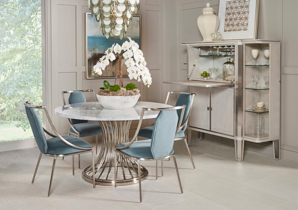 ãnh địa nội thất đủ chật hẹp để đào thải những cái tên không nhạy bén chuyển mình theo thời cuộc, nhưng cũng đủ rộng để dung dưỡng những thương hiệu không chỉ chế tác bằng kỹ thuật mà còn bằng cả linh hồn và trái tim. A.R.T. Furniture như gã nghệ sĩ cầu toàn, vẫy vùng trên bầu trời sáng tạo vốn không có giới hạn. Từng bộ sưu tập nối tiếp nhau ra đời đã minh chứng được năng lực chế tác của thương hiệu cũng như tham vọng chinh phục nhiều đối tượng khách hàng khác nhau.Nếu có thể chọn ra một BST chứa đựng đầy đủ những giá trị tuyệt vời nhất trong cả quá khứ lẫn tương lai thì ắt hẳn A.R.T. Furniture sẽ không ngại ngần xướng tên Landmark. BST này là khúc hoan ca du dương của những nốt trầm truyền thống pha lẫn nốt cao hiện đại trong ứng dụng, với điểm nhấn là phong cách Louis Phillipe được cách tân tài tình. Trên nền chất liệu đa dạng trải dài từ gỗ burl, đá cẩm thạch đến niken, hãng đã biến hóa khéo léo nhờ các phương pháp nhuộm màu, kỹ thuật phủ kim loại hay khảm gỗ mun. Để rồi khi cánh cửa ngôi nhà rộng mở, vị gia chủ sẽ nở nụ cười hài lòng rảo bước qua lớp sàn Paraquet tuyệt đẹp từ vân gỗ burl và veneer gỗ hồ đào, thích thú chạm tay lên nút kéo mang hình hoa lục giác hay thả mình chìm vào giấc ngủ êm ái trên chiếc giường bọc nệm theo phong cách menswear.