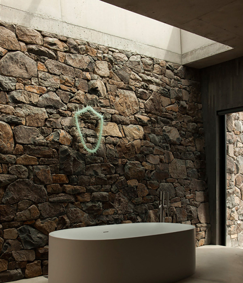 ược thiết kế bởi hãng kiến trúc Pattersons, công trình là một kiệt tác hòa quyện giữa kiến trúc hiện đại và triết lý sống gắn bó với tự nhiên. Căn nhà được xây dựng từ chính những khối đá lấy từ khu vực xung quanh, kết hợp với gỗ địa phương và bê tông thô mộc, tất cả nhằm tạo nên một công trình không chỉ đứng vững trước gió bão, mà còn khiêm nhường nép mình vào sườn vách đá ven biển.
