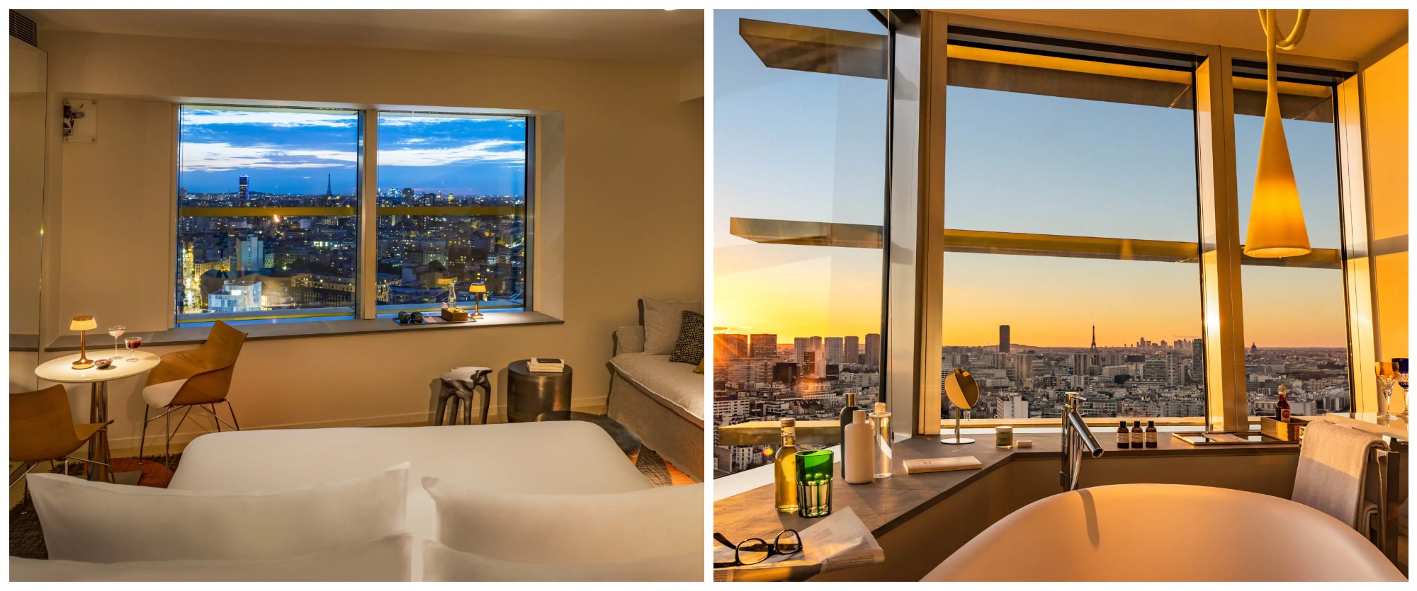 Giới mộ điệu thiết kế đẹp chắc chắn được trải nghiệm dịch vụ tối ưu, với các phòng lưu trú thiết kế tối giản thông minh, ngoại trừ chuông và còi không cần thiết thường thấy trong các khách sạn sang trọng. Thay vào đó, khách thoải mái tận hưởng những chiếc giường tạo góc mang tới cơ hội chiêm ngưỡng toàn cảnh thành phố từ trên cao, đáng chú ý nhất là Eiffel Tower Deluxe Junior Suite High-Floor. Đúng như tên gọi, chốn lưu trú hứa hẹn về tầm nhìn tuyệt vời ra quang cảnh tòa tháp biểu tượng thành Paris. Tại đây, họ chắc chắn hài lòng với giường sofa đôi, rèm che đảm bảo sự riêng tư, đèn điều khiển từ xa, góc đọc sách và bàn làm việc, bên cạnh phòng tắm trang bị vòi sen riêng cũng cung cấp tầm nhìn thoáng đãng ra chân trời phía xa.