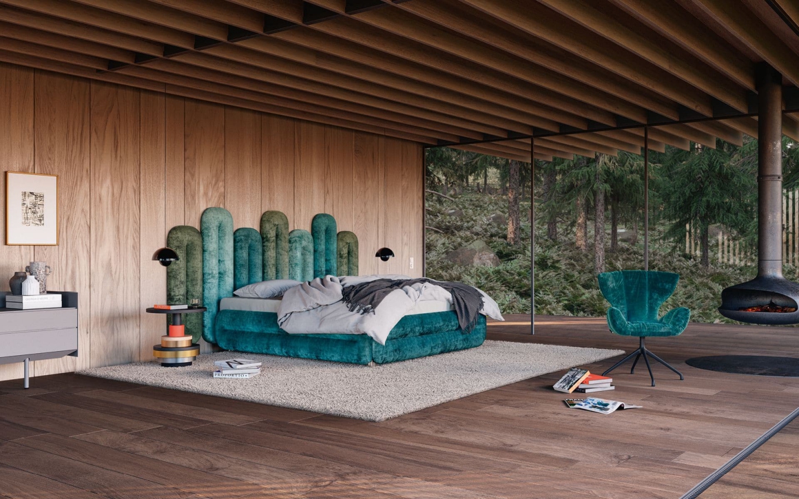 Giường ngủ là chốn đi về, là ốc đảo nhỏ bình yên và cũng là một cung điện trong mơ của mỗi chúng ta. Bộ sưu tập Eclair ra đời từ ý tưởng của nhà thiết kế Dagmar Marsetz sẽ góp phần hiện thực hóa giấc mơ về một cung điện kỳ diệu và đầy sắc màu. Nguyên tắc thiết kế của bộ sưu tập Eclair dựa trên dạng vòm, có thể được sắp xếp tùy vào chiều dài và rộng của giường. Những tấm ván bọc vải Bohème hình vòm được gắn vào tường, tạo thành phần lưng phía sau cho chiếc giường.