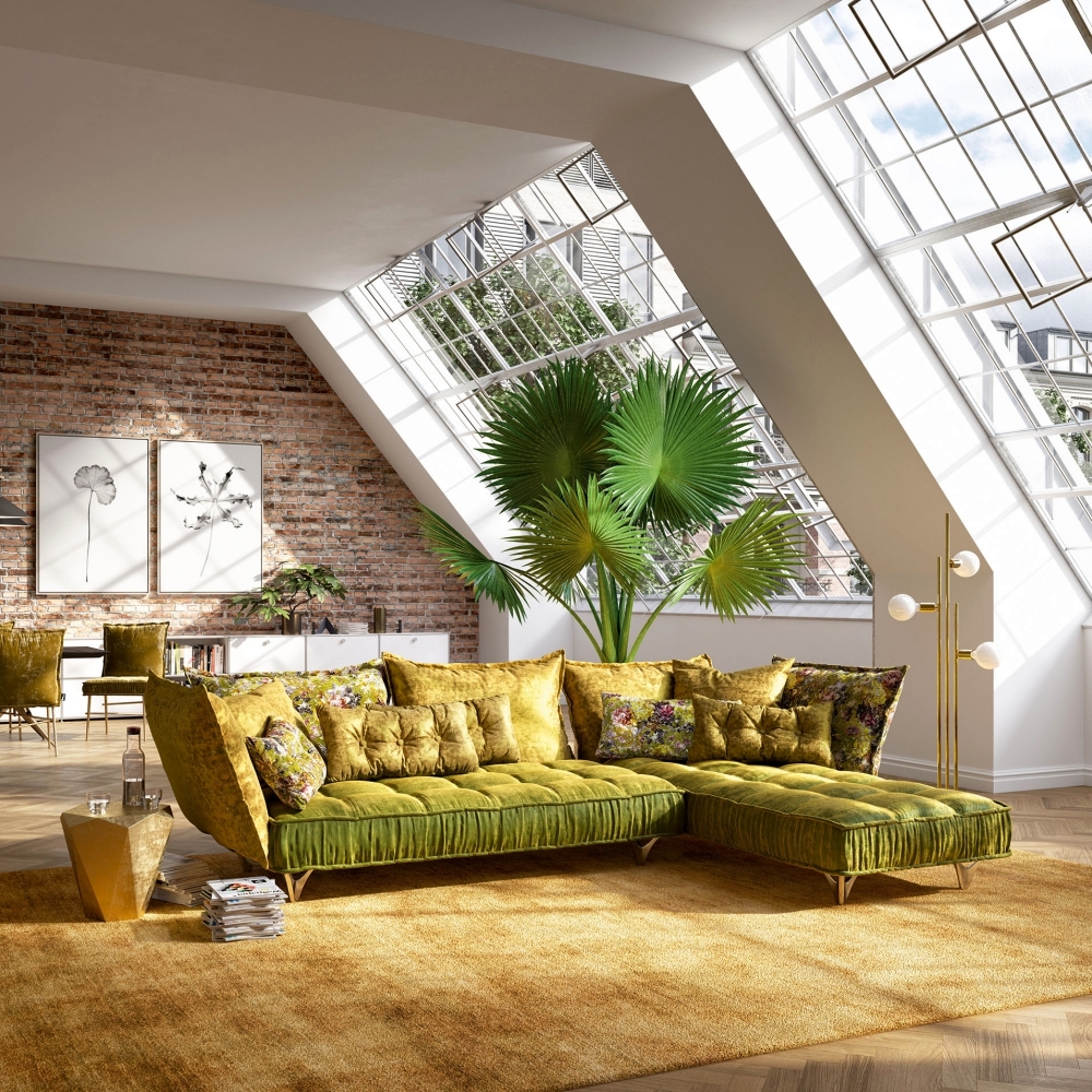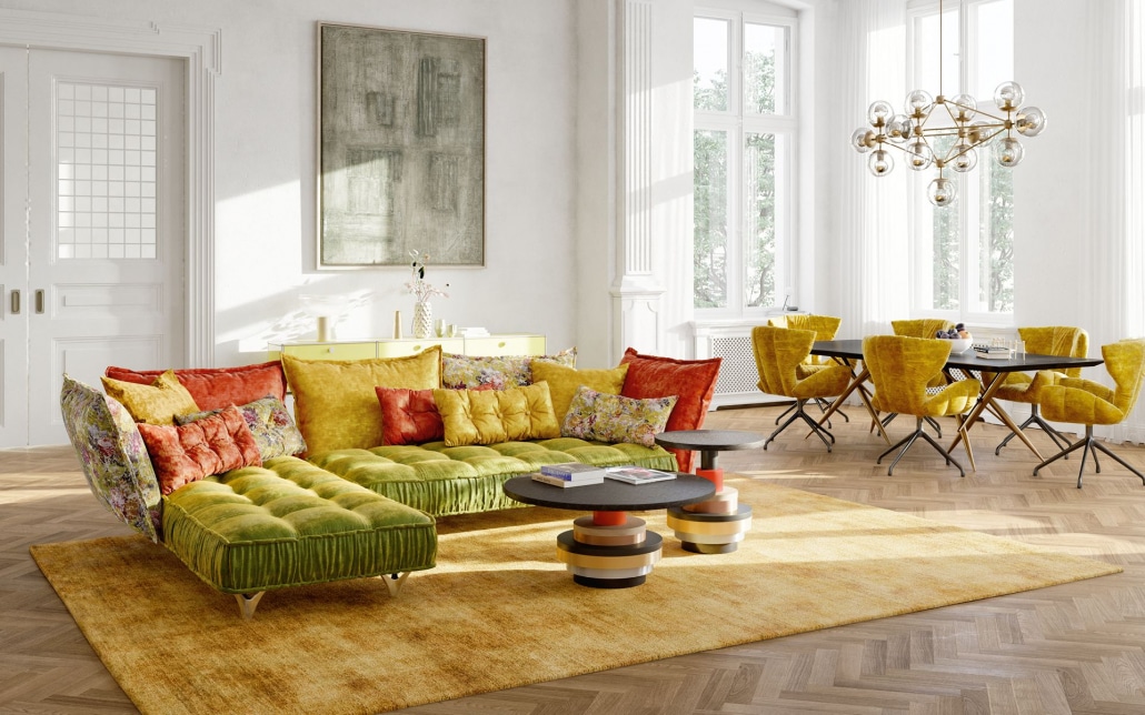 Lấy cảm hứng từ sự tinh tế của phương Đông với màu cam, vàng, xanh lá cây hay vẻ ngoài tươi mới từ màu bạc và xanh dương, bộ sưu tập Ohlinda của nhà thiết kế Carolin Kutzera như một người đẹp toàn diện, thu hút mọi ánh nhìn. Những chiếc ghế sofa Ohlinda gợi cảm giác như một đồng cỏ hoa tươi tốt trong ngôi nhà. Đệm lưng có thể kết hợp với nhiều màu sắc khác nhau. Bạn như được chìm đắm vào vùng biển phía Nam, nơi có cát vàng và những con sóng vỗ dập dờn.