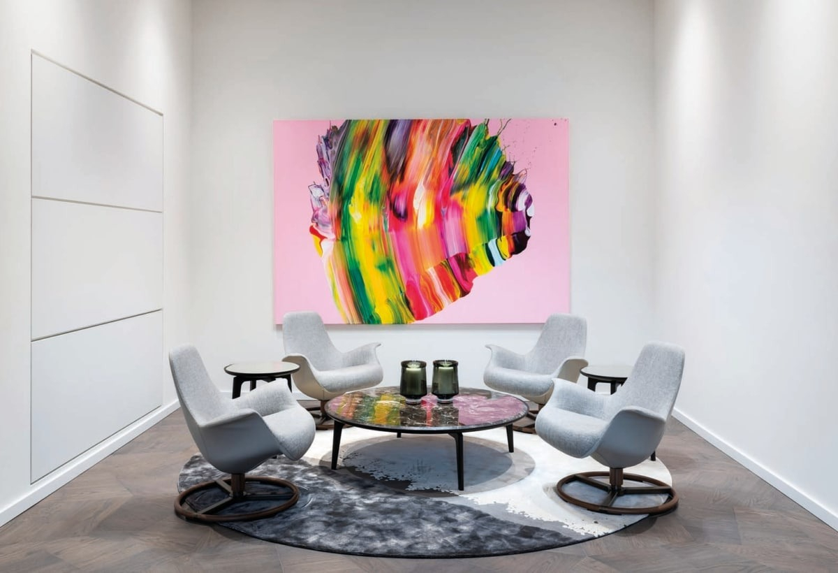 Một trong những dự án đáng nhớ của Giorgetti là hợp tác cùng thương hiệu Audemars Piguet để trang hoàng cho cửa hàng ở Barcelona. Không gian triển lãm ở đây được xây dựng theo nguyên tắc căn hộ, trong đó mỗi phòng đều được thiết kế bằng tất cả cảm xúc rung động, từ đó hình thành nên bầu không khí ấm áp như ở nhà. Phòng khách sử dụng màu sắc nhẹ nhàng với đồ nội thất độc đáo, bao gồm một chiếc ghế sofa Tamino hình học và những chiếc ghế bành Pamina được sắp xếp hợp lý, trong khi bàn Blend và thảm đục từ bộ sưu tập Giorgetti Atmosphere giúp bố cục trở nên độc đáo hơn. Tại hai quầy bar ở sảnh – nơi để các vị khách ngồi lại và lựa chọn chiếc đồng hồ ưng ý, người ta có thể chiêm ngưỡng đầy đủ kỹ năng xử lý gỗ của Giorgetti qua các thiết kế ghế Hug và Aura, ghế Tiche cũng như bàn cà phê Corallo của nhà thiết kế Fabio Rebozio. Chiếc bàn Bigwig dễ nhận biết, do Roberto Lazzerona tạo ra, được làm mới với các chi tiết bằng đá cẩm thạch Zebrino. Cuộc hành trình xuyên qua Audemars Piguet House kết thúc tại một hội trường được trang bị ghế bành Tilt, bàn đá cẩm thạch Blend kết hợp với thảm Moonshadow.