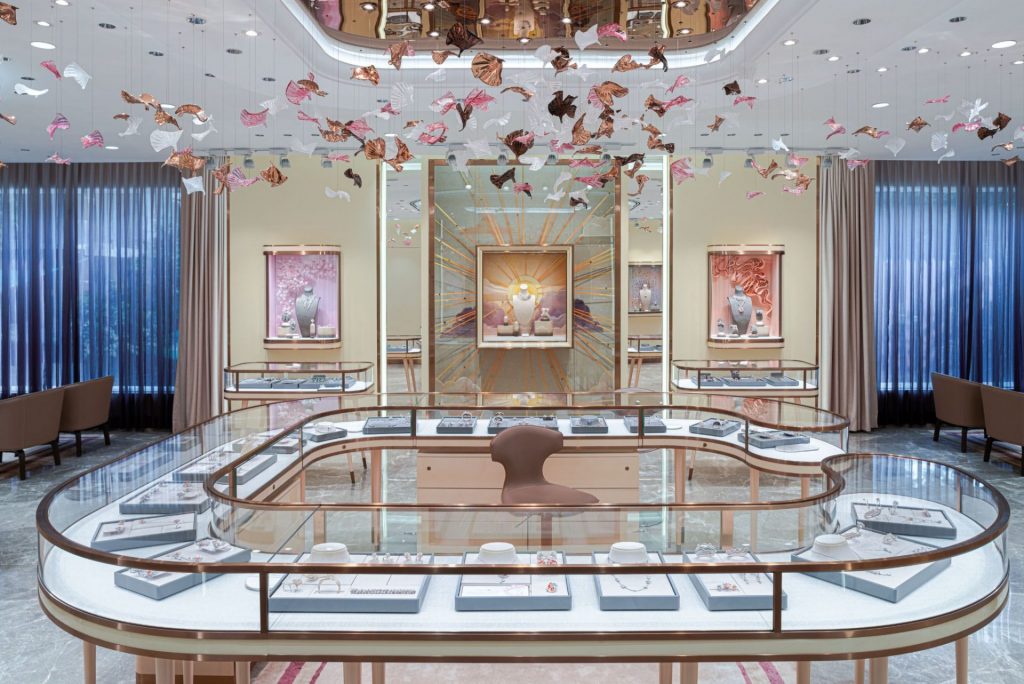 ưới sự dẫn dắt của Kiến trúc sư Jitesh Kamdar, Holistic Design Studio đã tạo nên một bản giao hưởng tinh tế giữa sang trọng và công năng. Triết lý thiết kế của họ hướng đến việc thổi vào không gian hơi thở quốc tế, đồng thời vẫn gìn giữ bản sắc cao cấp vốn có của thương hiệu Popley. Những đường nét đương đại, các bề mặt vật liệu hiện đại cùng đường cong mềm mại giúp tôn lên ánh sáng và làm nổi bật từng tuyệt tác trang sức được trưng bày.