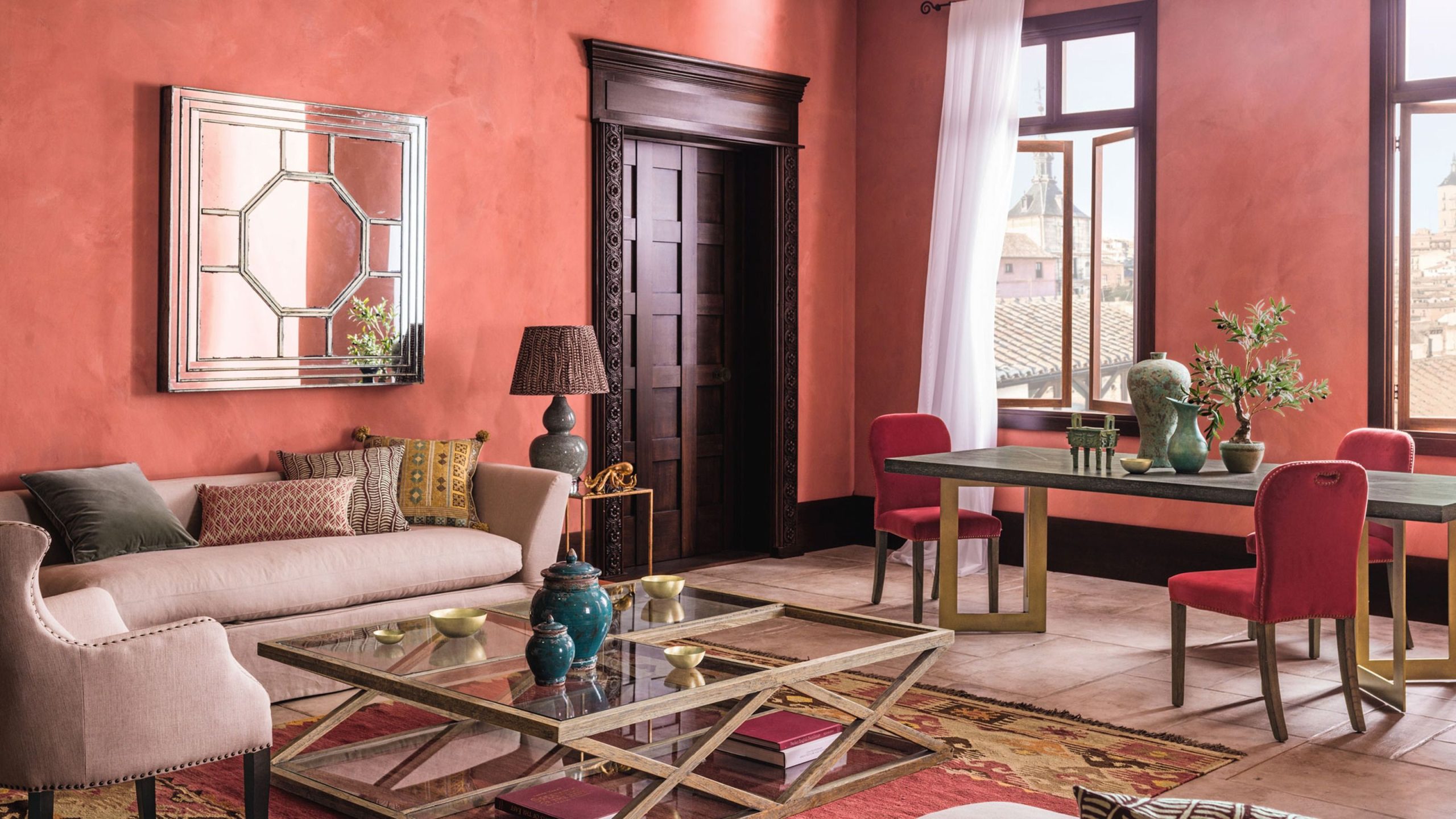 Màu đỏ nâu của rỉ sét, đất nung, hổ phách, sienna cháy,.. giúp làm cho không gian nội thất trở nên ấm cúng hơn, nhất là trong thời điểm tiết trời chuyển sang thu đông. Khi nói đến thiết kế nội thất, màu đỏ có thể gợi ra hình ảnh về bức tường nổi bật của Big trong series truyền hình nổi tiếng Sex and the City. May mắn thay, tông màu đỏ núi lửa được ưa chuộng năm nay ít sắc thái bão hòa hơn đáng kể, khiến chúng có thể phù hợp với nhiều loại phòng khác nhau.