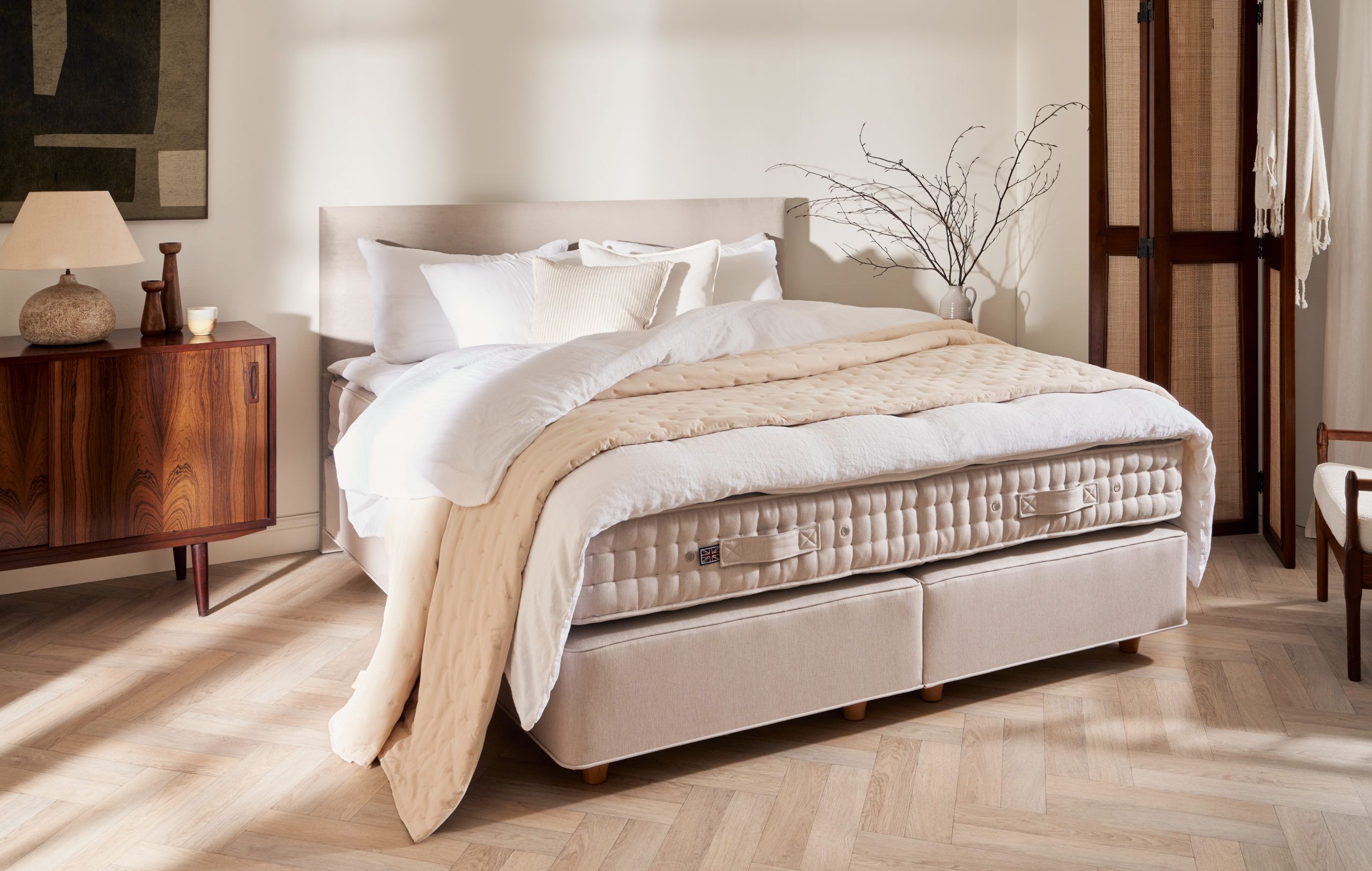 Rất nhiều người chọn lựa đầu tư một khoản tiền lớn vào xe hơi hay những tài sản khác mà ít chú ý đến chiếc nệm – nơi chúng ta gắn bó 8 tiếng mỗi ngày (tương đương với 1/3 cuộc đời). Thế nhưng, quan niệm này của họ sẽ thay đổi nếu được một lần trải nghiệm chiếc giường thủ công được sản xuất theo tiêu chuẩn cao nhất của Vispring, nhất là khi chúng kết hợp cùng giao diện đơn sắc để trở thành điểm nhấn ấm áp trong phòng ngủ. Bảng màu đơn sắc hiện có sẵn trên toàn bộ dòng sản phẩm, ngoại trừ nệm Devonshire, Shetland, Shetland Superb và Diamond Majesty. Chiếc giường giờ đây không chỉ là một công cụ chăm sóc sức khỏe và tinh thần của gia chủ mà còn là một sự lựa chọn thông minh để trang trí cho không gian phòng ngủ riêng tư.