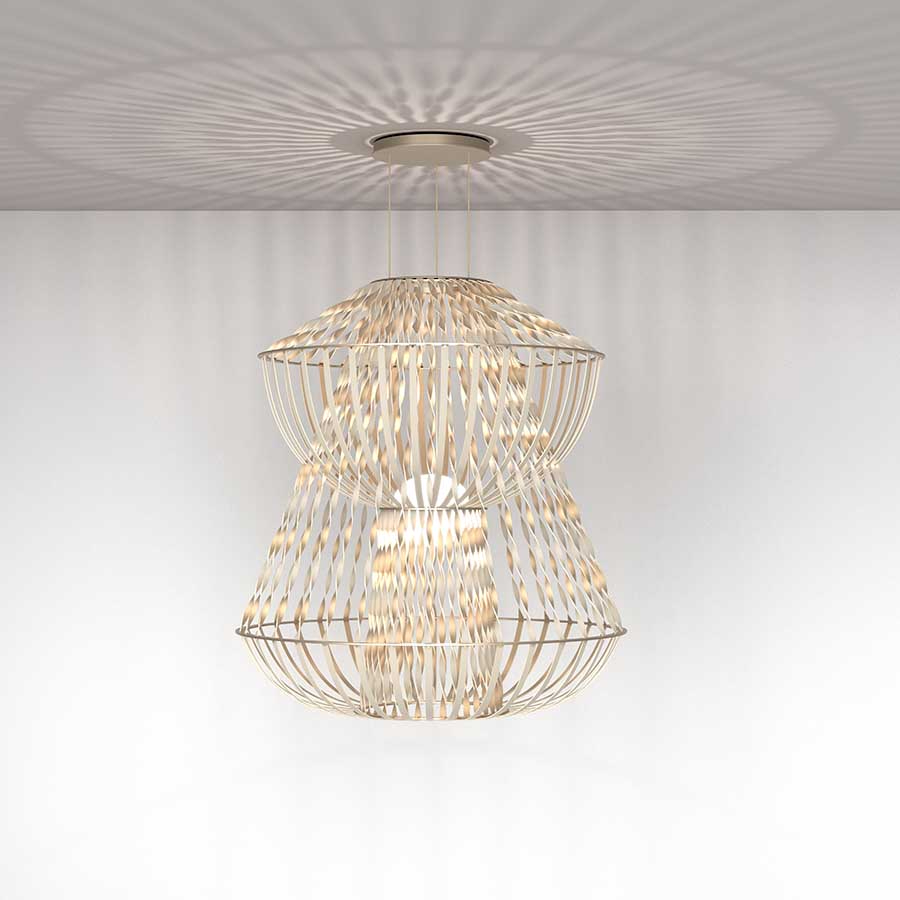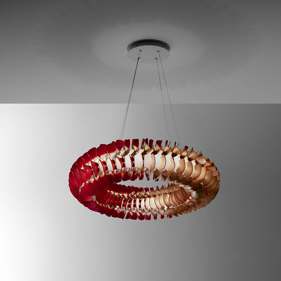 Ban đầu được thiết kế như một điểm nhấn chiếu sáng cho cửa hàng tại Thành Đô của Louis Vuitton, Đèn chùm xoắn ốc hiện có phiên bản gia đình dài 1,2 mét, trưng bày 36 dây da hai màu xoắn thanh lịch với các vòng tròn kim loại màu sâm panh và đèn LED. Nó bổ sung hoàn hảo cho Đèn xoắn ốc dây đeo bằng da, có sẵn ba cách kết hợp màu sắc quyến rũ.