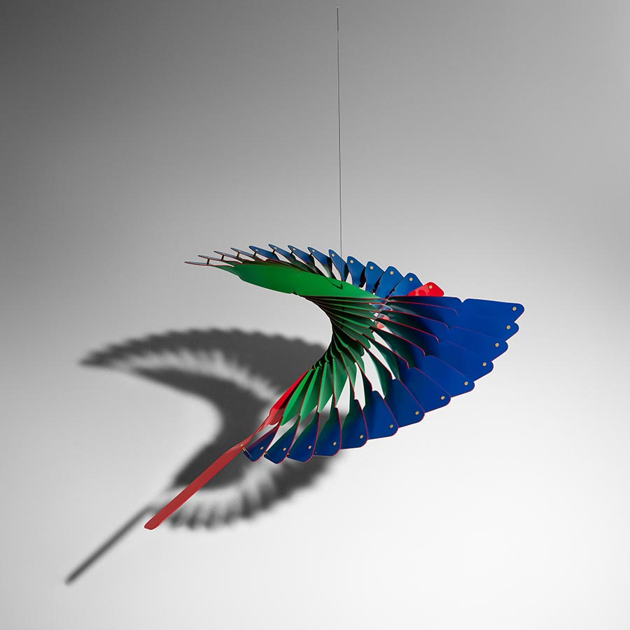 Lấy cảm hứng từ bộ lông rực rỡ của loài chim quetzal Trung Mỹ, Quetzal giới thiệu 13 chiếc “lông vũ” cứng cáp, xoắn được bọc trong da Louis Vuitton có tông màu xanh lam và xanh lục, được tạo điểm nhấn bằng các cạnh nhuộm màu đỏ, tạo nên hình ảnh trừu tượng đẹp mắt về một con quetzal trong chuyến bay.