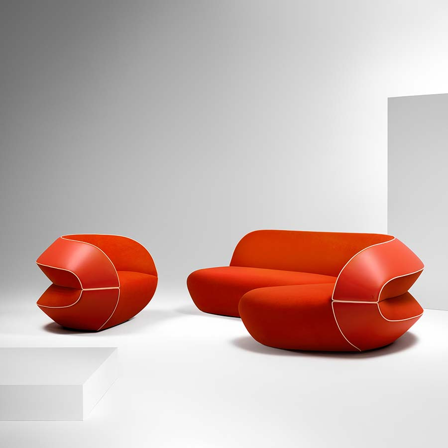 Một tuyệt tác về thiết kế, chiếc ghế bành Binda của Raw-Edges thể hiện sự kết hợp của những đường nét uyển chuyển, lưng bọc da và ghế bọc nhung xa hoa với năm kiểu kết hợp màu sắc đầy mê hoặc. Sự hiện diện của nó dễ dàng biến những mặt phẳng thành sự sang trọng ba chiều.