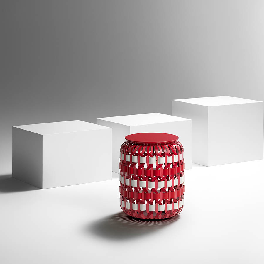 Kiệt tác này, được thiết kế cho cả không gian trong nhà và ngoài trời, kết hợp liền mạch các họa tiết tổ ong dệt bằng da với mặt đá nham thạch tráng men phản chiếu, thể hiện sự kết hợp đầy nghệ thuật giữa hình thức và chức năng.