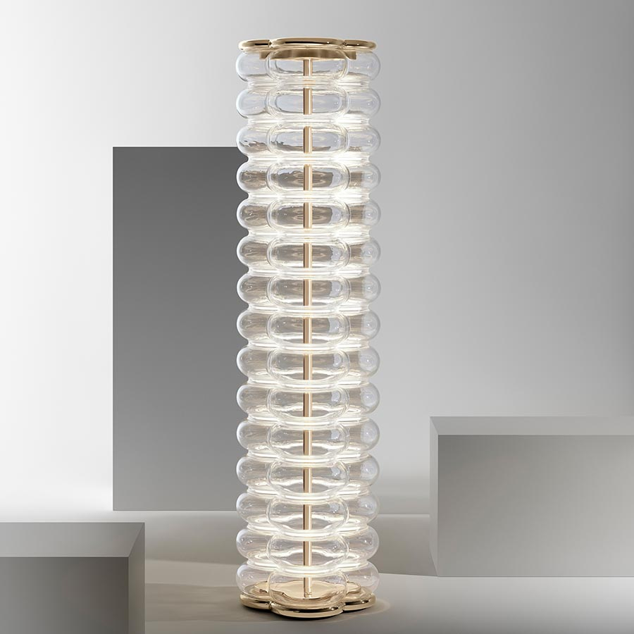 Chiếc đèn sáng tạo này được chế tạo từ thủy tinh Ý thổi thủ công tự hào có các bong bóng hình bông hoa dường như nổi trên quầng sáng, không chỉ cung cấp ánh sáng mà còn mang lại nét trang trí tinh tế cho mọi không gian.