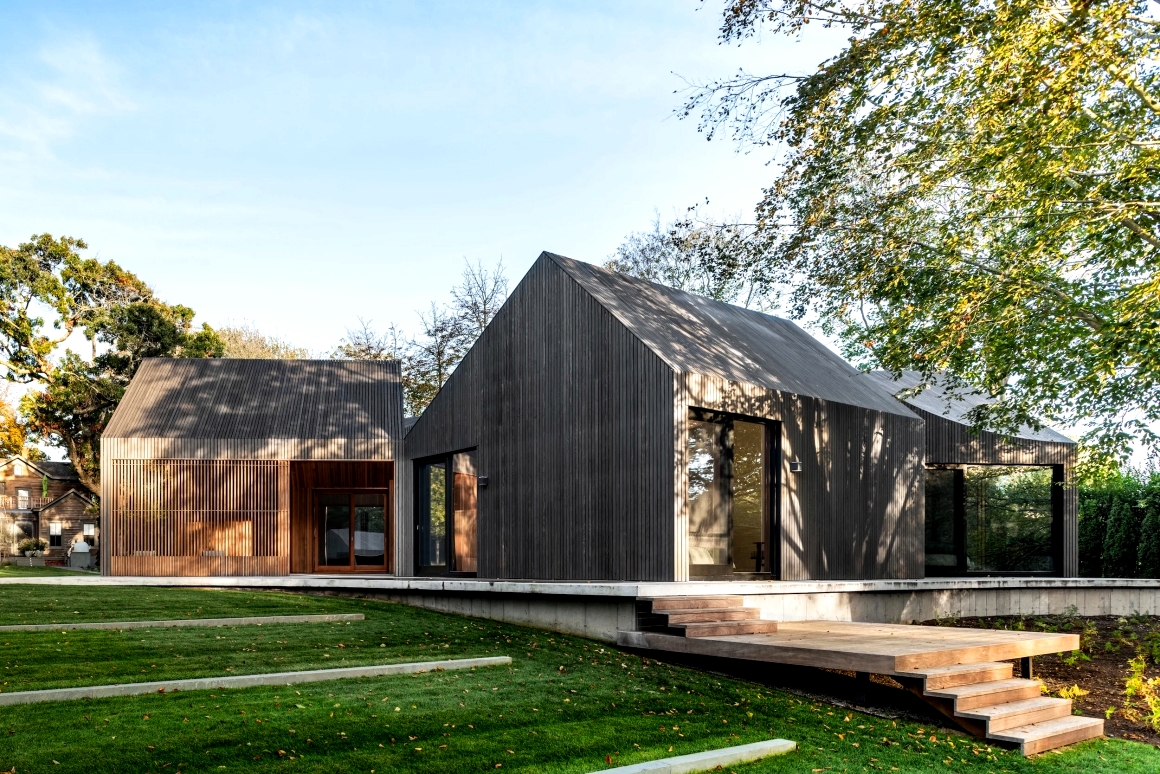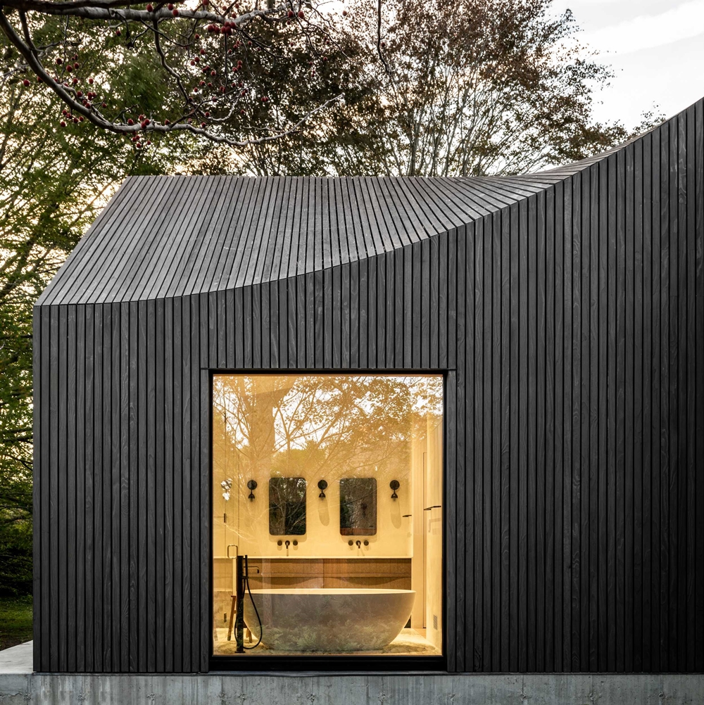Được bao phủ hoàn toàn bởi gỗ Accoya với gam màu xám đậm, ngôi nhà Six Square House nổi bật giữa khung cảnh thiên nhiên đất trời như một tác phẩm nghệ thuật.