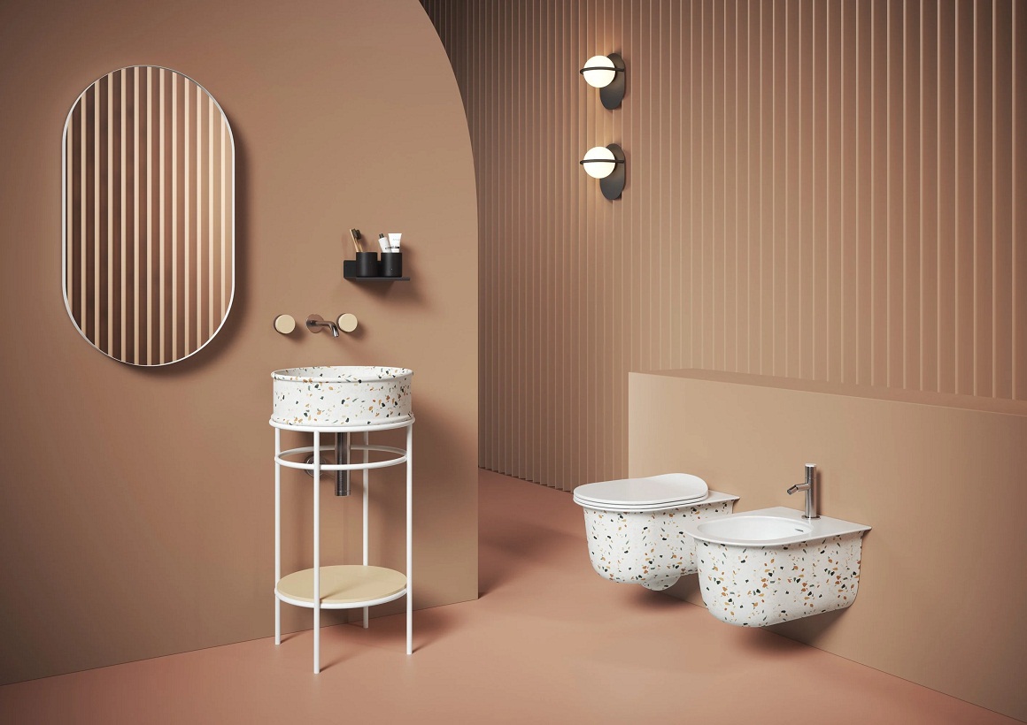 Một điểm đặc biệt không thể không nhắc đến trong bộ sưu tập lần này của The.Artceram chính là lối thiết kế tách rời các bộ phận của thiết bị như vòi nước biệt lập với bồn rửa tay hay kệ đựng đồ biệt lập với bồn tắm tạo cảm giác mỗi thiết bị như một món đồ trang trí nhỏ xinh có thể di chuyển linh loạt. Bên cạnh đó, mỗi thiết kế sẽ được sản xuất với nhiều phiên bản màu sắc và họa tiết khác nhau, từ vân đá cá tính đến chất liệu sứ cao cấp hiện đại hay tông màu trầm sang trọng, đẳng cấp. Đi kèm với mỗi thiết bị cũng sẽ có các phụ kiện hỗ trợ với thiết kế vô cùng đẹp mắt như đèn treo, giá đựng cốc đánh răng, kệ để sách hay nến thơm cạnh bồn tắm,…