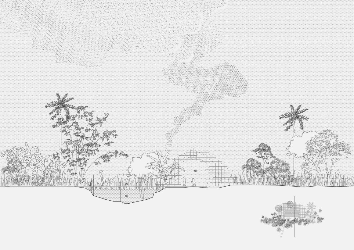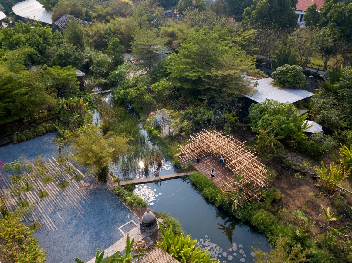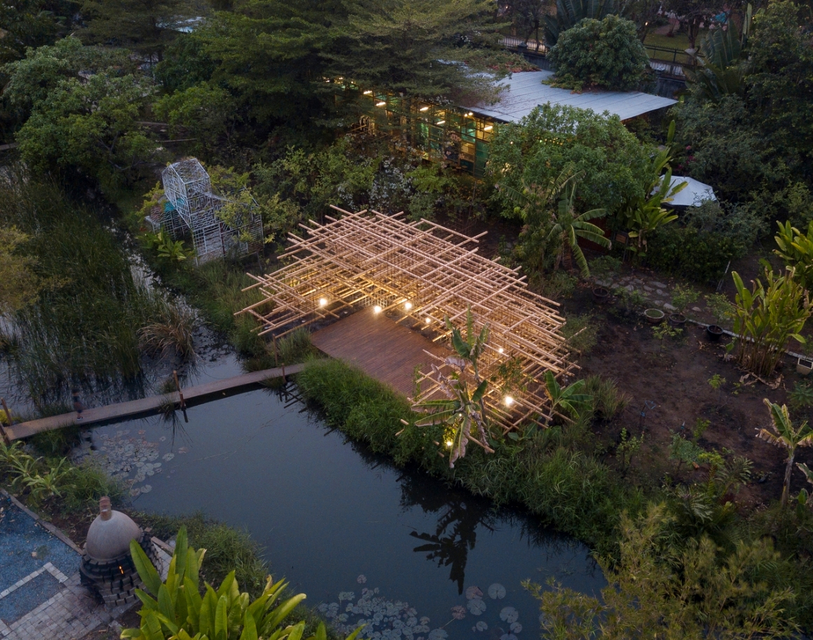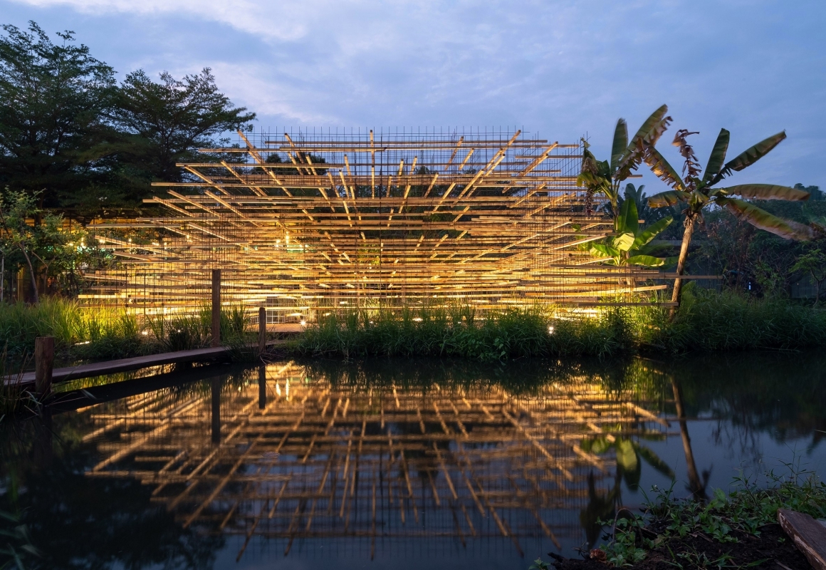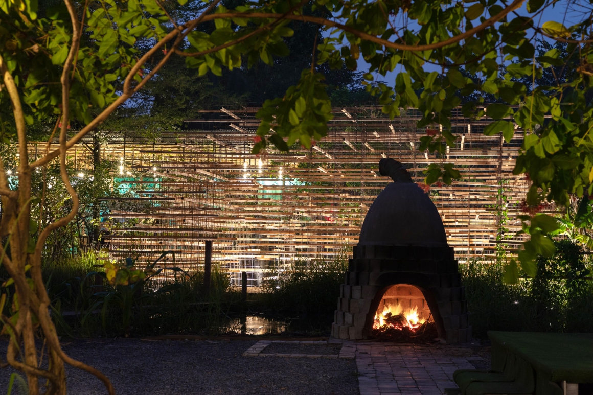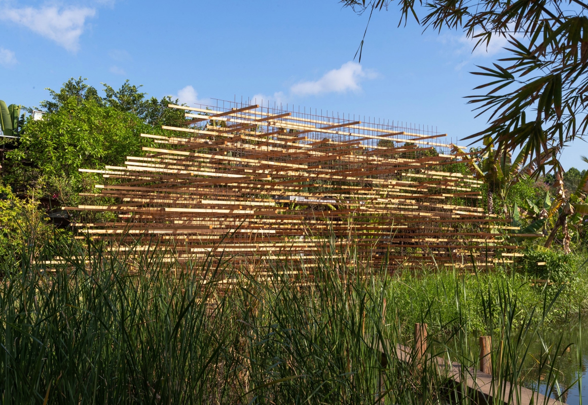 Lấy cảm hứng từ hình ảnh thân thuộc của đồng quê Việt Nam, The Straw Pavilion hiện lên như một nét chấm phá nhẹ nhàng nhưng nổi bật giữa khu vườn cây trĩu quả. Với mong muốn xây dựng một không gian cho các sự kiện cộng đồng tại Thủ Đức, các kiến trúc sư của MIA Design Studio đã khơi gợi ký ức về miền quê gần gũi và mộc mạc.