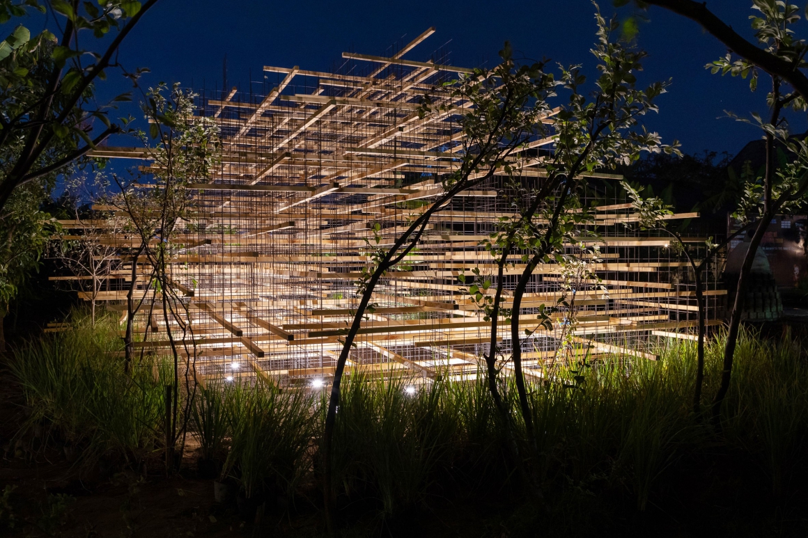 Không những thế, ánh sáng tự nhiên cũng được tận dụng tối đa, tạo hiệu ứng chiếu xuyên qua các khoảng trống giữa những thanh gỗ và đổ bóng trên mặt sân. The Straw là một kiểu kiến trúc hòa nhập, chìm đắm vào thiên nhiên mà không hề phô trương. Tất cả tạo nên một sự kết hợp nhuần nhuyễn mà không làm phá vỡ những điều đang hiện hữu.
