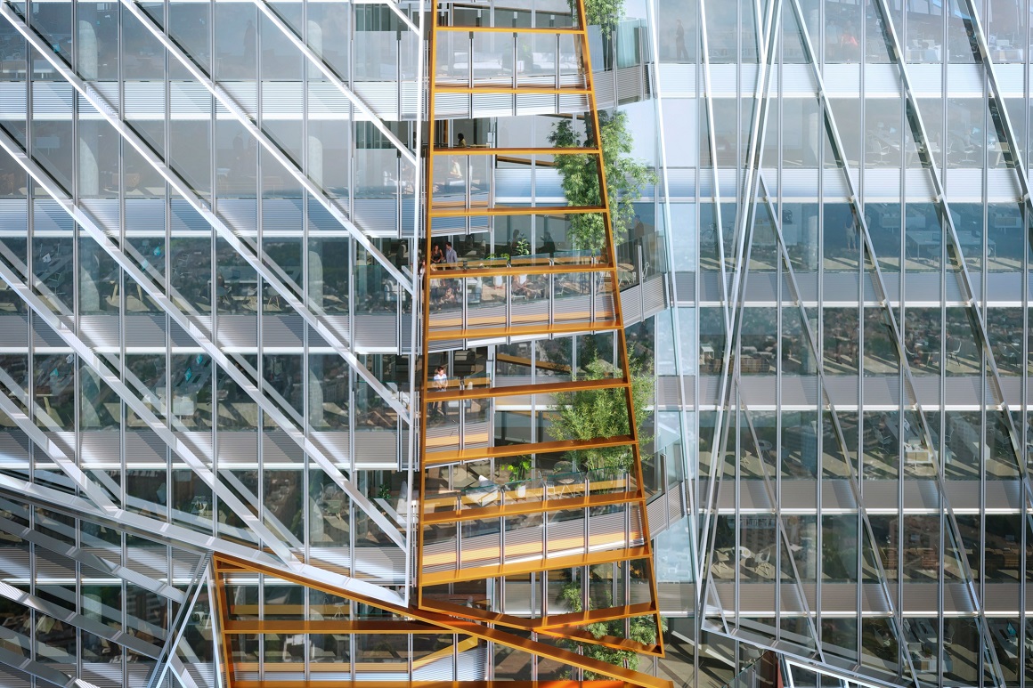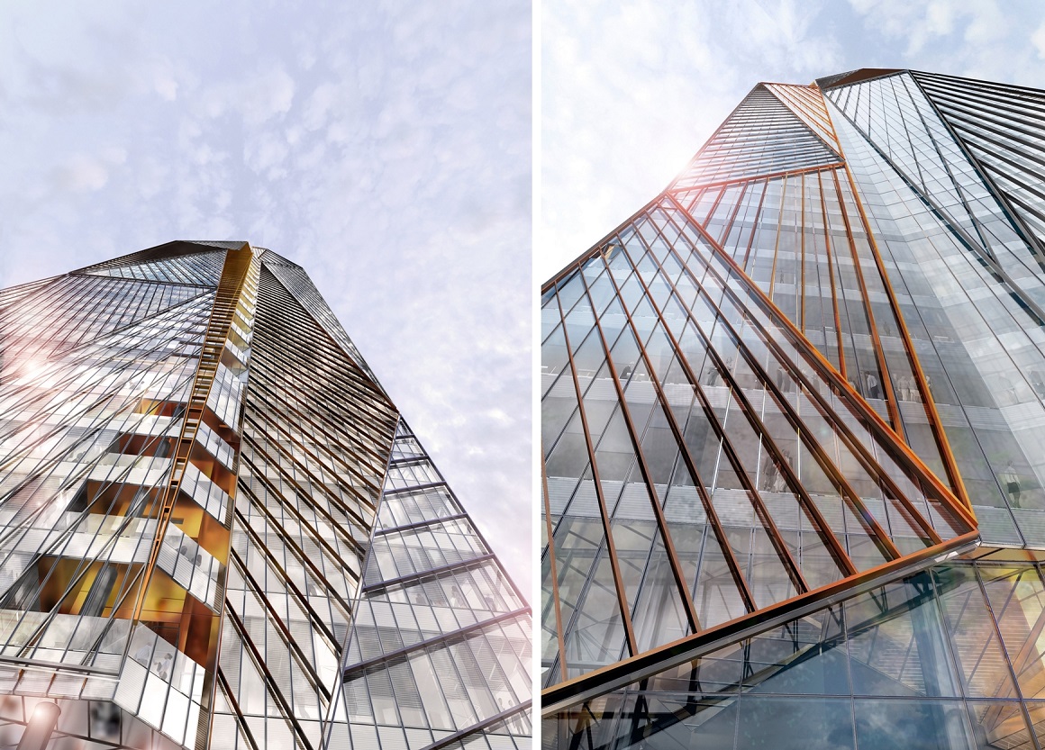 Đối với tòa tháp HEKLA 48 tầng, kiến trúc sư Ateliers Jean Nouvel sử dụng nhôm màu vàng cho các thanh chống kim loại đặt bao quanh công trình. Chi tiết độc đáo này không chỉ làm tôn lên những tấm kính hình tam giác được đặt ngay tại mặt tiền của tháp mà còn tăng thêm vẻ rực rỡ cho “đường chân trời” của Paris. Việc sử dụng các thanh chống bằng nhôm cũng sẽ đóng vai trò như tấm tôn chắn, làm chệch hướng ánh sáng mặt trời và giảm sự tăng nhiệt trong tháp kính.
