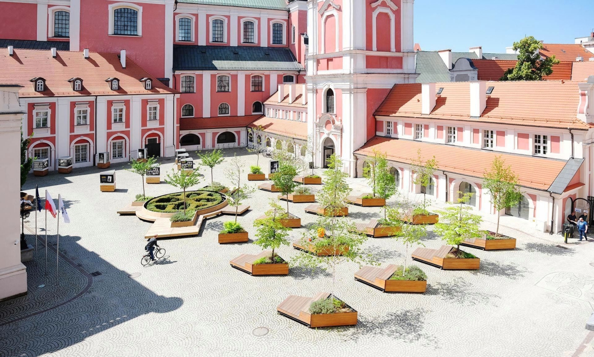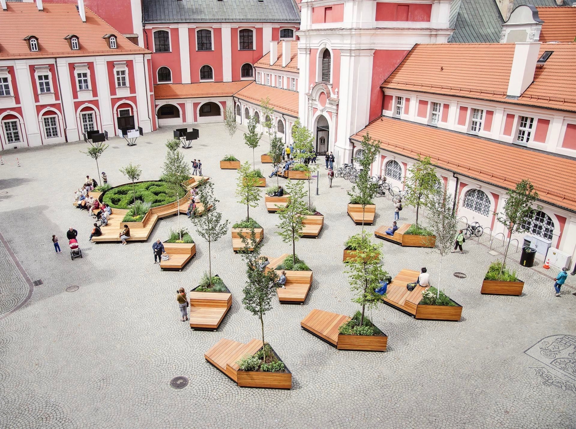 ể góp phần tạo nên những nét chấm phá độc đáo cho phần sân trong của Tòa thị chính Poznan, bộ đôi nhà thiết kế Starzak Strebicki và Joanna Januszewska đã hợp tác cùng nhau để hoàn thiện dự án này. Nội thất công cộng bên trong sân bao gồm 20 chậu cây xanh hình tam giác, một băng ghế tròn bao quanh bồn hoa và 14 chiếc ghế di động. Những chậu cây hình tam giác được sắp xếp tự do, không theo trật tự nào, tạo cảm giác gần gũi và kết nối con người với thiên nhiên. Đồng thời, nhờ hình dáng nhỏ gọn của những chậu cây mà phần không gian chung vẫn rất thoáng mát và rộng rãi, thuận tiện để người dân sinh hoạt và giao lưu với nhau.