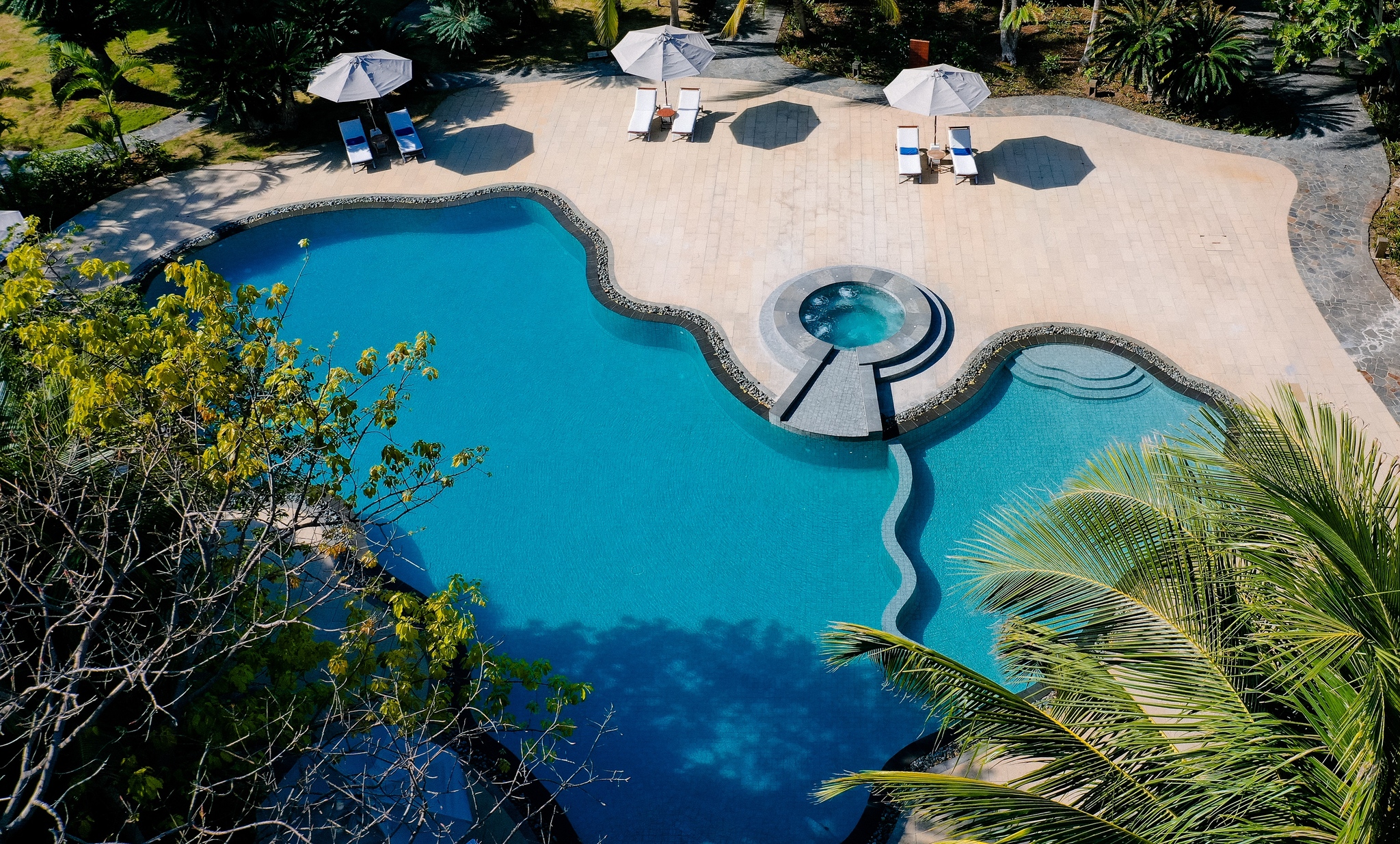 Tại Azerai Kê Gà Bay, sẽ thật thiếu sót khi không trải nghiệm những hồ bơi được thiết kế hết sức thi vị. Khu nghỉ dưỡng có ba khu vực hồ bơi, trong đó hồ bơi Oceanfront hướng biển với không gian ăn uống ngoài trời để du khách chiêm ngưỡng khung cảnh hoàng hôn buông xuống ngọn hải đăng tuyệt đẹp; hồ Ginger mát rượi ẩn mình giữa khu vườn nhiệt đới; và hai hồ bơi Frangipani. Vào buổi bình minh lên, những lớp học yoga được tổ chức ngay khu vực hồ bơi Oceanfront nhìn thẳng ra biển hay trong rừng gừng xanh tươi sẽ là trải nghiệm tuyệt vời mà bạn không nên bỏ qua để thanh lọc thân-tâm-trí.