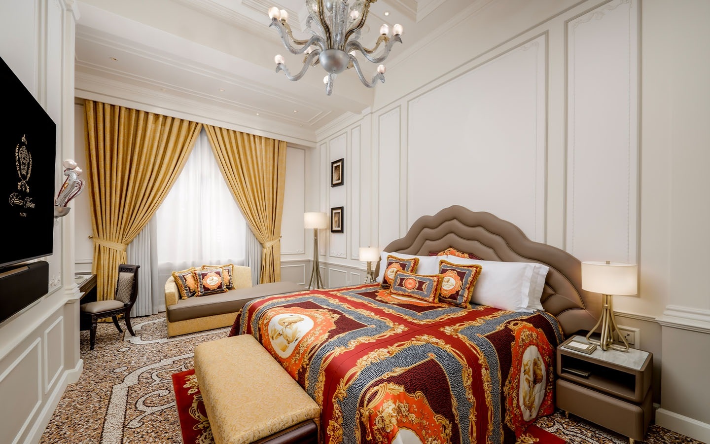 Palazzo Versace Macau sở hữu 271 phòng và suite được trang trí họa tiết đặc trưng Versace, trong đó Imperial Suite rộng 350 mét vuông chính là viên ngọc quý giá xa hoa nhất của cả công trình nhờ vào các tiện nghi xa hoa bao gồm hai phòng ngủ, bồn tắm massage lớn và phòng giải trí hiện đại. Các phòng và suite khác sở hữu khăn trải giường và vải được chế tạo đặc biệt thể hiện phong cách sống phóng khoáng của Versace và được bổ sung bởi các yếu tố lấy cảm hứng từ văn hóa Trung Quốc. Ngoài ra, các vị khách quý còn có thể tận hưởng sự yên tĩnh trong phòng tắm hammam kiểu Versace hoặc bồn tắm kiểu Thổ Nhĩ Kỳ với công dụng thư giã và trẻ hóa kỳ diệu.