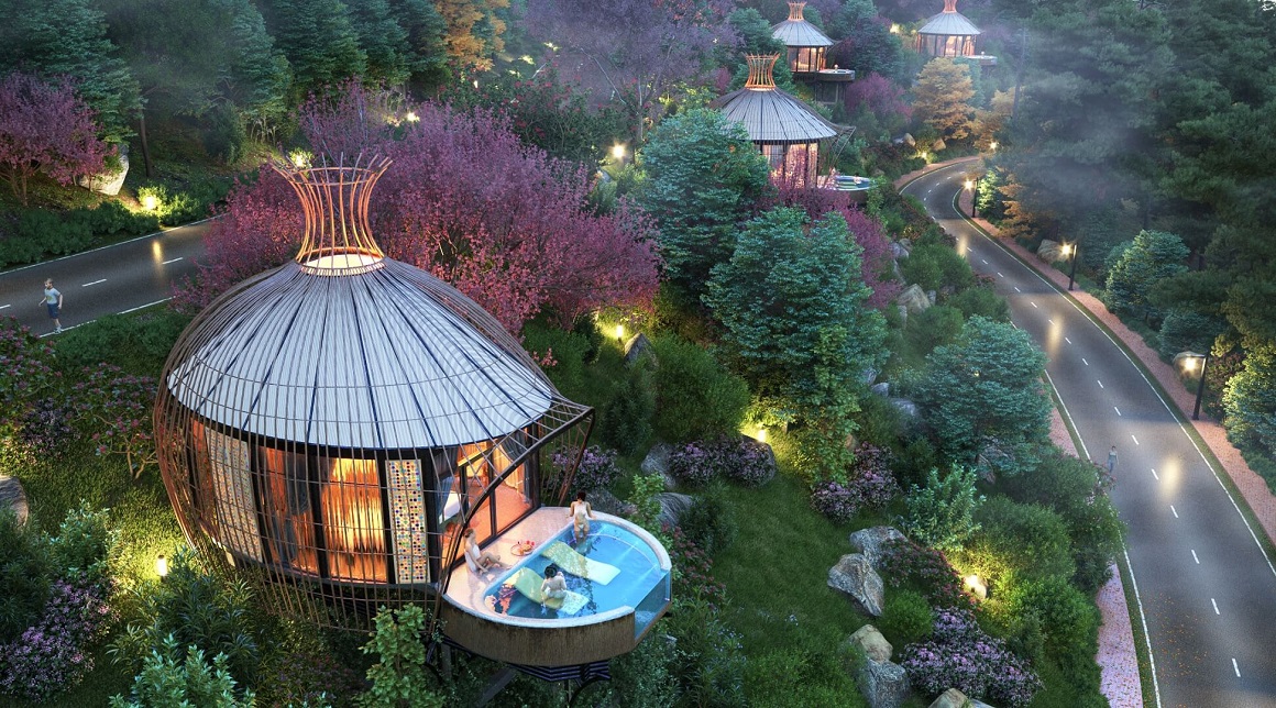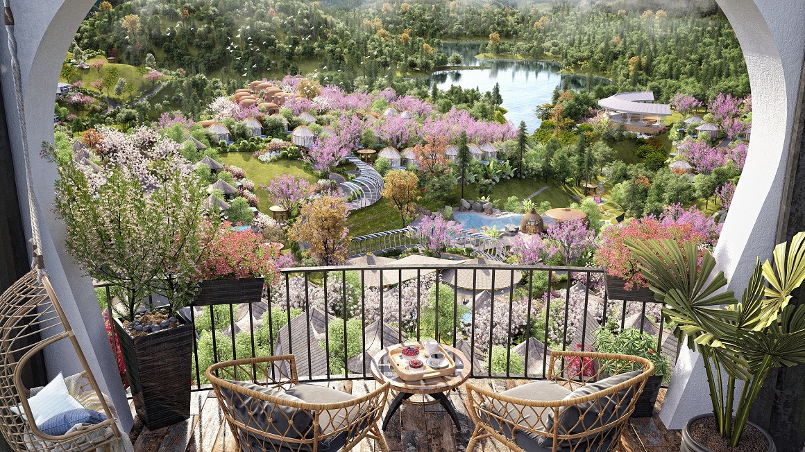 Sakana Resort Hòa Bình có diện tích quy hoạch 12,1ha bao gồm: 1,7ha đất thương mại dịch vụ; 3,9ha đất lưu trú ngắn ngày, 0,13ha đất hạ tầng kỹ thuật; 2,46ha đất cây xanh; 2,2ha đất giao thông. Có thể thấy, mật độ xây dựng của dự án chỉ ở mức 25%, dành không gian cho cây xanh để mang đến trải nghiệm nghỉ dưỡng giữa lòng thiên nhiên.