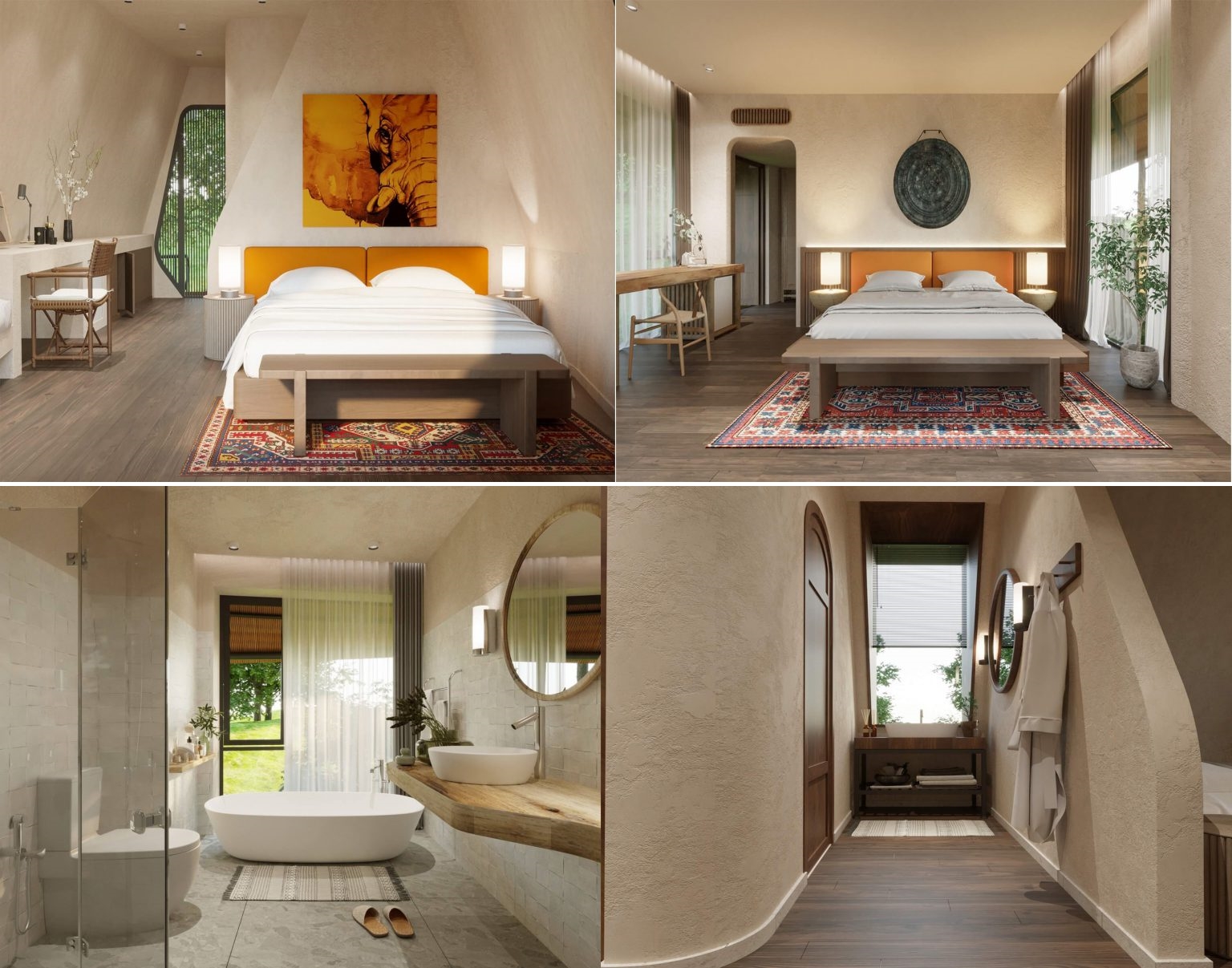 Gồm tổng số 248 căn biệt thự với diện tích 150 – 250m2, Sakana Resort Hòa Bình tái hiện lại một bản làng Tây Bắc dân dã với 4 loại hình biệt thự độc đáo: nhà Nón, nhà Nơm, nhà Tổ Chim và nhà Rông. Đặc biệt, tất cả các căn đều có bể bơi, điều hòa, thông gió và xử lý rác thải đạt chuẩn resort 5 sao.