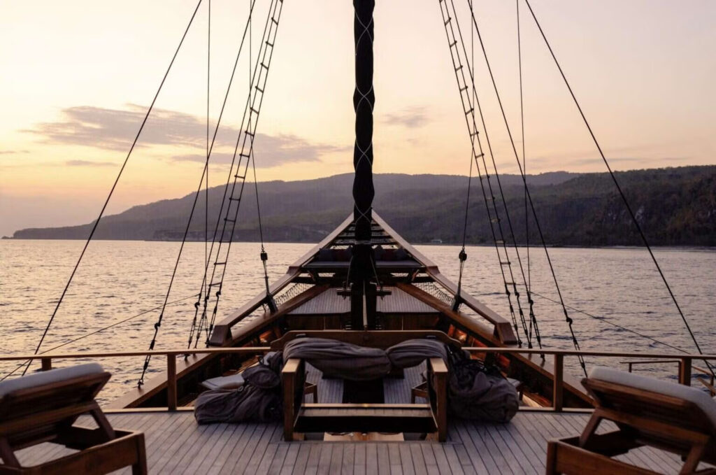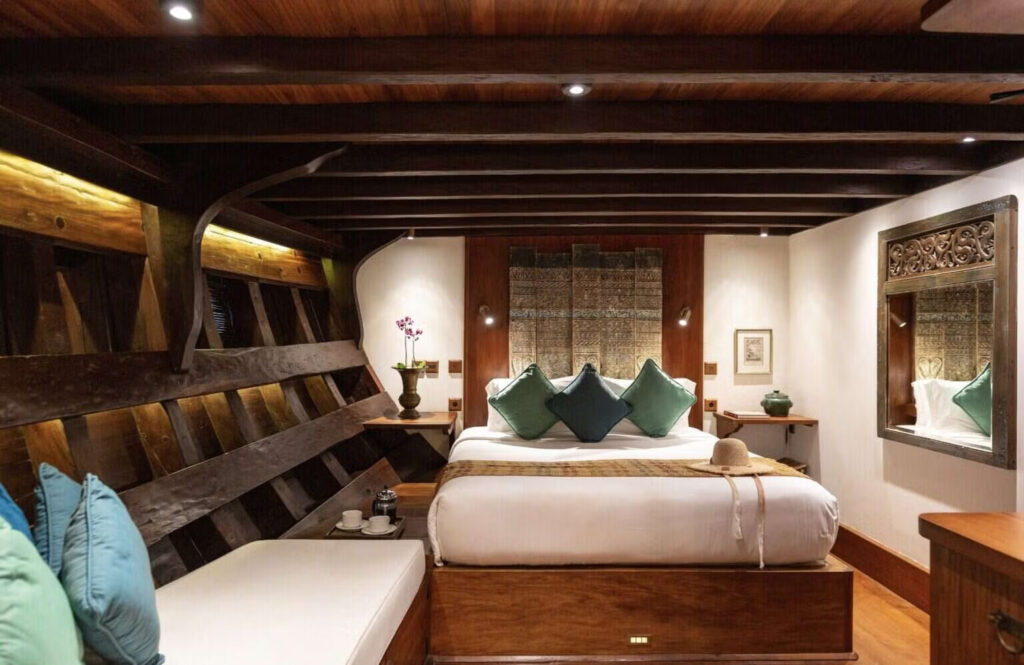 ai con thuyền gỗ phinisi – Silolona và Si Datu Bua – không chỉ là phương tiện di chuyển mà là di sản sống, được chế tác thủ công bởi những nghệ nhân Konjo. Mỗi chi tiết trên thuyền, từ gỗ lim bóng loáng, vải vóc thủ công đến gốm nghệ thuật, gợi nhắc về sự kết hợp hài hòa giữa tinh hoa truyền thống và tiện nghi đẳng cấp boutique.