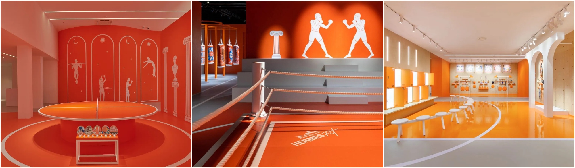 Vào khoảng thời gian nghỉ ngơi, khách hàng có thể lựa chọn những loại nước trái cây yêu thích tại quầy bar hoặc xem thi đấu trực tiếp trên võ đài Quyền Anh. Đối với hãng, nguồn thể lực dồi dào không chỉ xuất phát từ quá trình luyện tập chăm chỉ, mà còn nằm ở không gian cộng hưởng xung quanh. Vì thế, phần lớn nội thất bên trong đều sở hữu tông màu cam vui tươi, nét đặc trưng của Hermès với mong muốn tăng thêm phần sống động và nhiệt huyết.