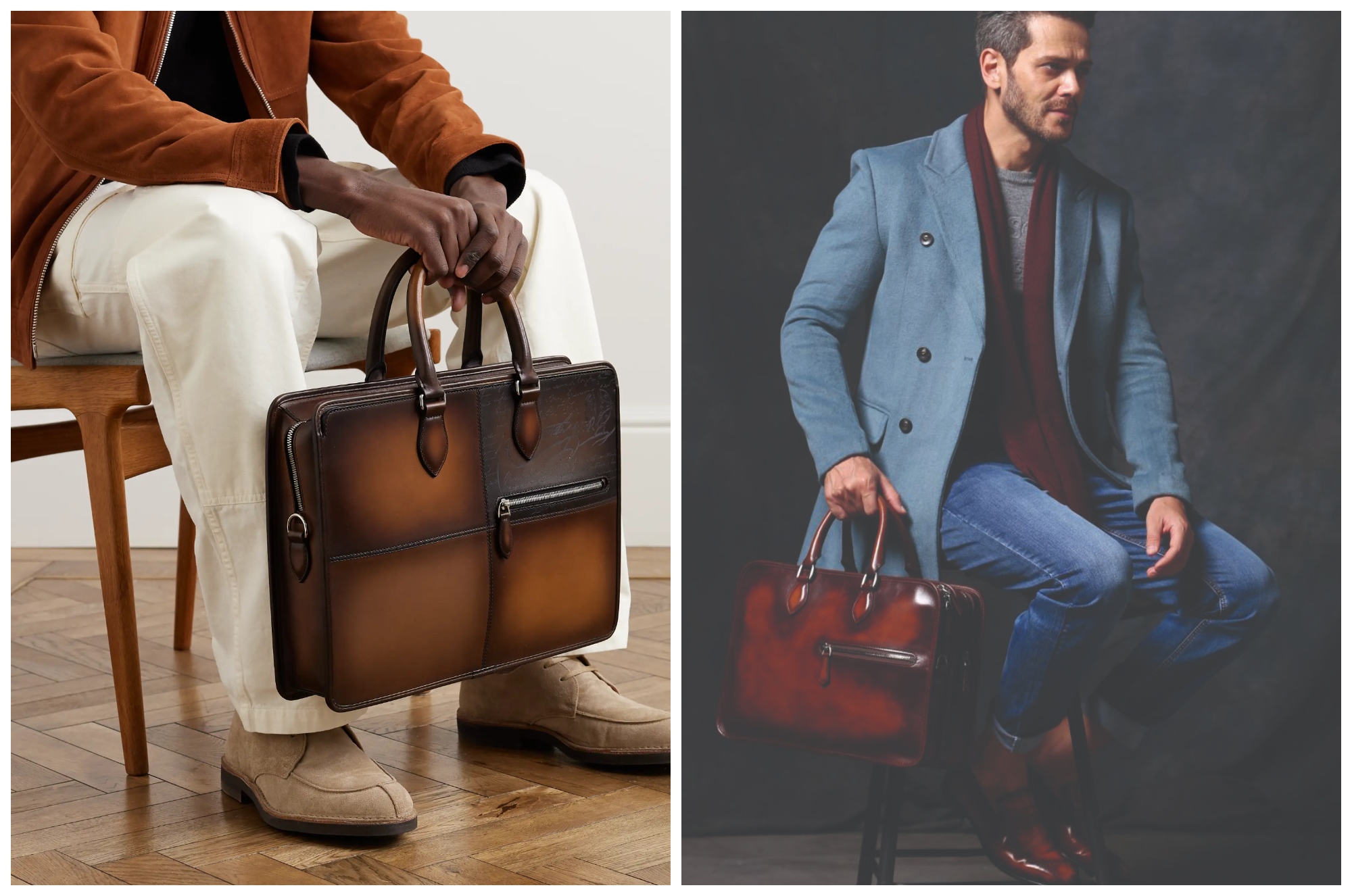 Ngày nay, briefcase đảm nhận vai trò là vật phẩm thời trang thiết yếu trong tủ quần áo của quý ông sành điệu. Yếu tố cốt lõi để tạo dựng thành công hình ảnh doanh nhân thành đạt cùng phụ kiện này là khéo léo điều khiển nó ‘phục tùng’ theo phong cách cá nhân mỗi người. Từ thiết kế giản đơn buổi ban đầu, chiếc briefcase đã không ngừng phát triển, từ kết cấu, phần cứng bổ sung đến tính năng bên trong lẫn dây đeo. Mặc dù vậy, quý ông hẳn luôn muốn biến hóa phong cách cùng item mà mình ưa thích. Tùy trường hợp đi công tác hoặc đến văn phòng mỗi ngày, họ thích chiếc briefcase tiện dụng xuất hiện ấn tượng với dây kiểu đeo vai hoặc chéo ngang hông.