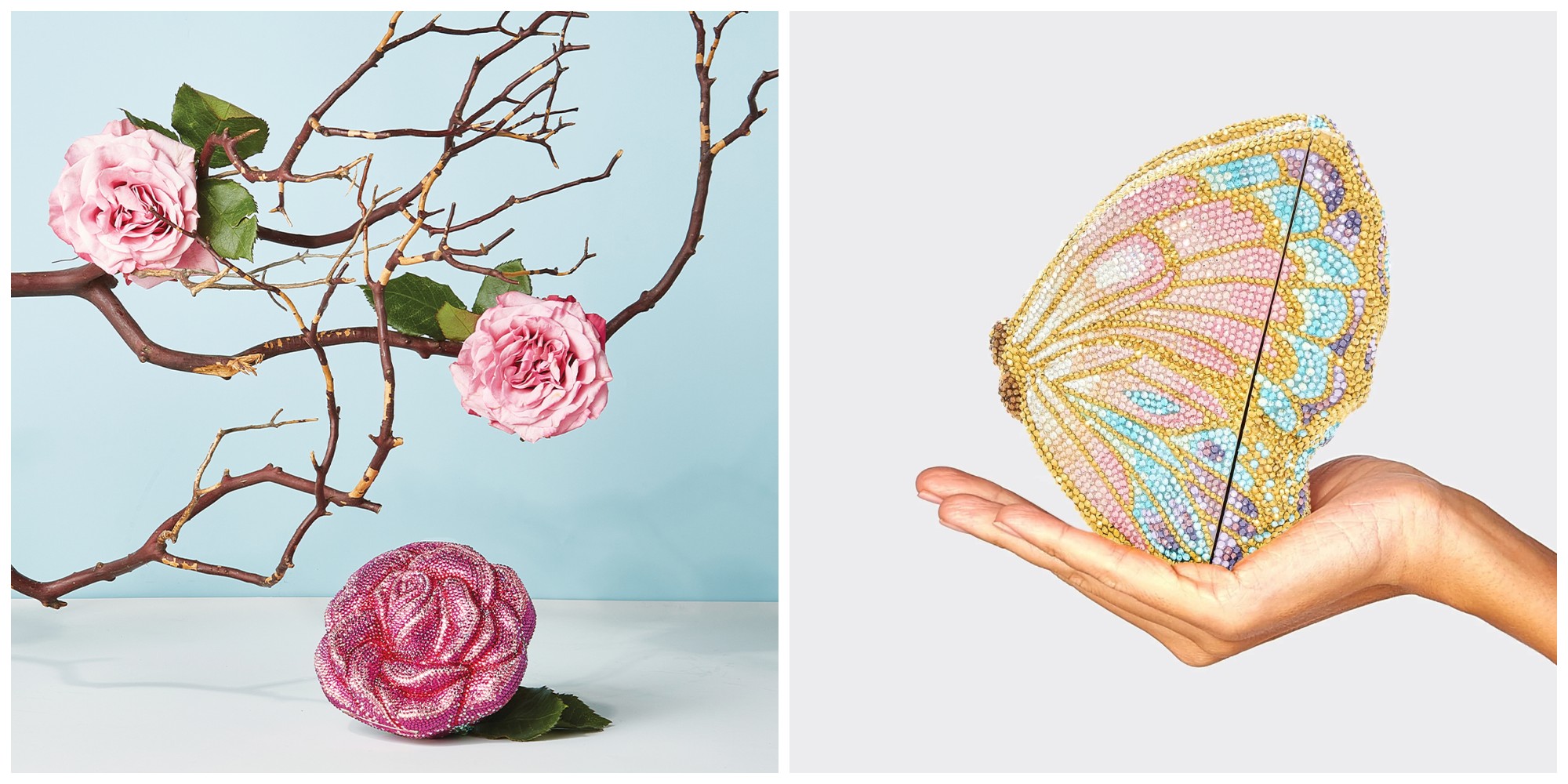 Judith Leiber liên tục cập nhật những phong cách mới lạ phổ biến nhất của mình. Ý tưởng sáng tạo như thăng hoa cùng những đôi cánh pha lê màu nước ombre của Butterfly Serafina dành cho dạ tiệc tối trông thật lộng lẫy trên nền vàng 24 karat. Cũng phù hợp song hành vị nữ chủ nhân đến những buổi tiệc tối sang trọng, ví cầm tay Blush Rose mới trong hình bông hồng rất đỗi quyến rũ, tinh tế và lấp lánh với tổ hợp pha lê màu hồng.