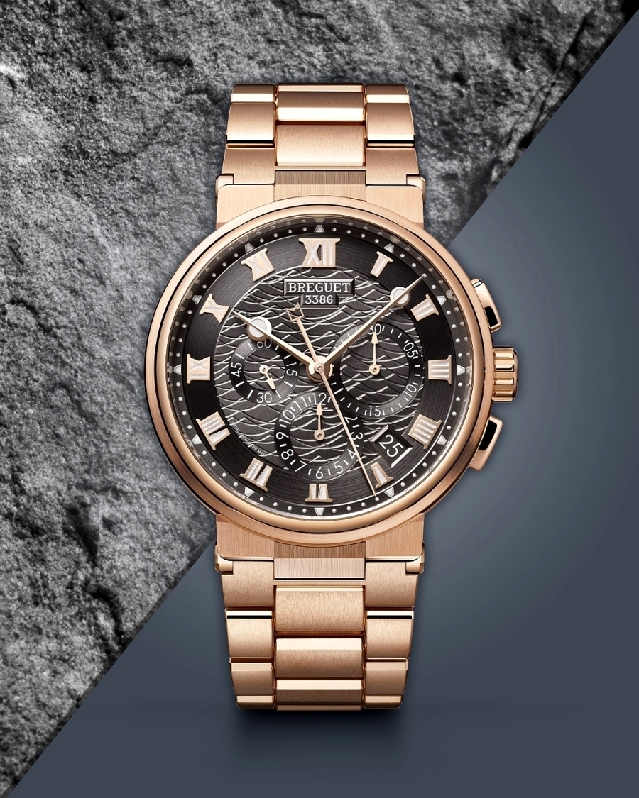 Phản ánh nguồn cảm hứng đúng như tinh thần bộ sưu tập ban đầu, các phiên bản Marine vàng hồng 18K tôn vinh guillochage – một nghệ thuật mà Breguet trân quý và nỗ lực giữ gìn qua bao thế hệ. Mặt số vàng, giống như cửa sổ của một con tàu, để lộ cái nhìn thoáng qua về biển, kết hợp họa tiết guillochage diễn giải từng đợt sóng gợn nhấp nhô theo làn gió nhẹ.