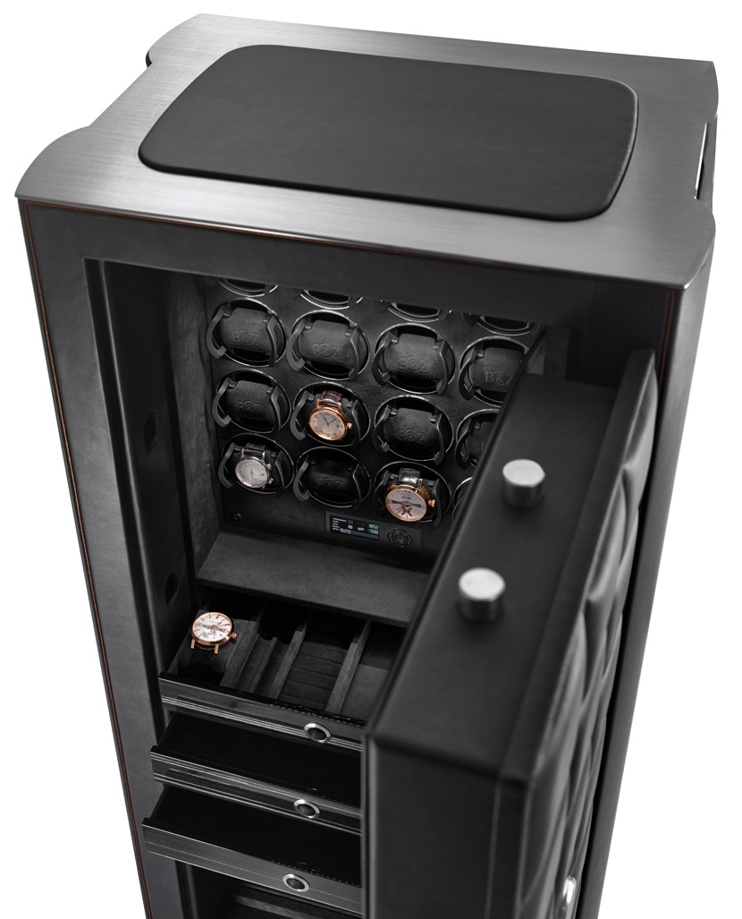 Được thiết kế theo tiêu chuẩn VdS I Security Class, ổ khóa này sẽ là lớp bảo vệ bất khả xâm phạm cho những kỷ vật quý báu được cất giữ bên trong két sắt. Mở két ra, chủ nhân sẽ được chiêm ngưỡng dàn máy lên dây cót Time Mover cao cấp cùng những ngăn tủ gỗ thượng hạng được trang hoàng bởi hệ thống đèn LED tối tân. Tất cả như phủ lên những kỷ vật trong đây một bức màn chắc chắn và bất khả xâm phạm, dù là bụi bẩn, vi khuẩn, hay thậm chí là thời gian.