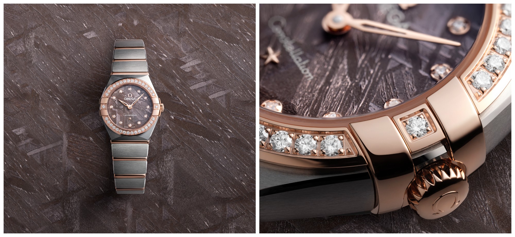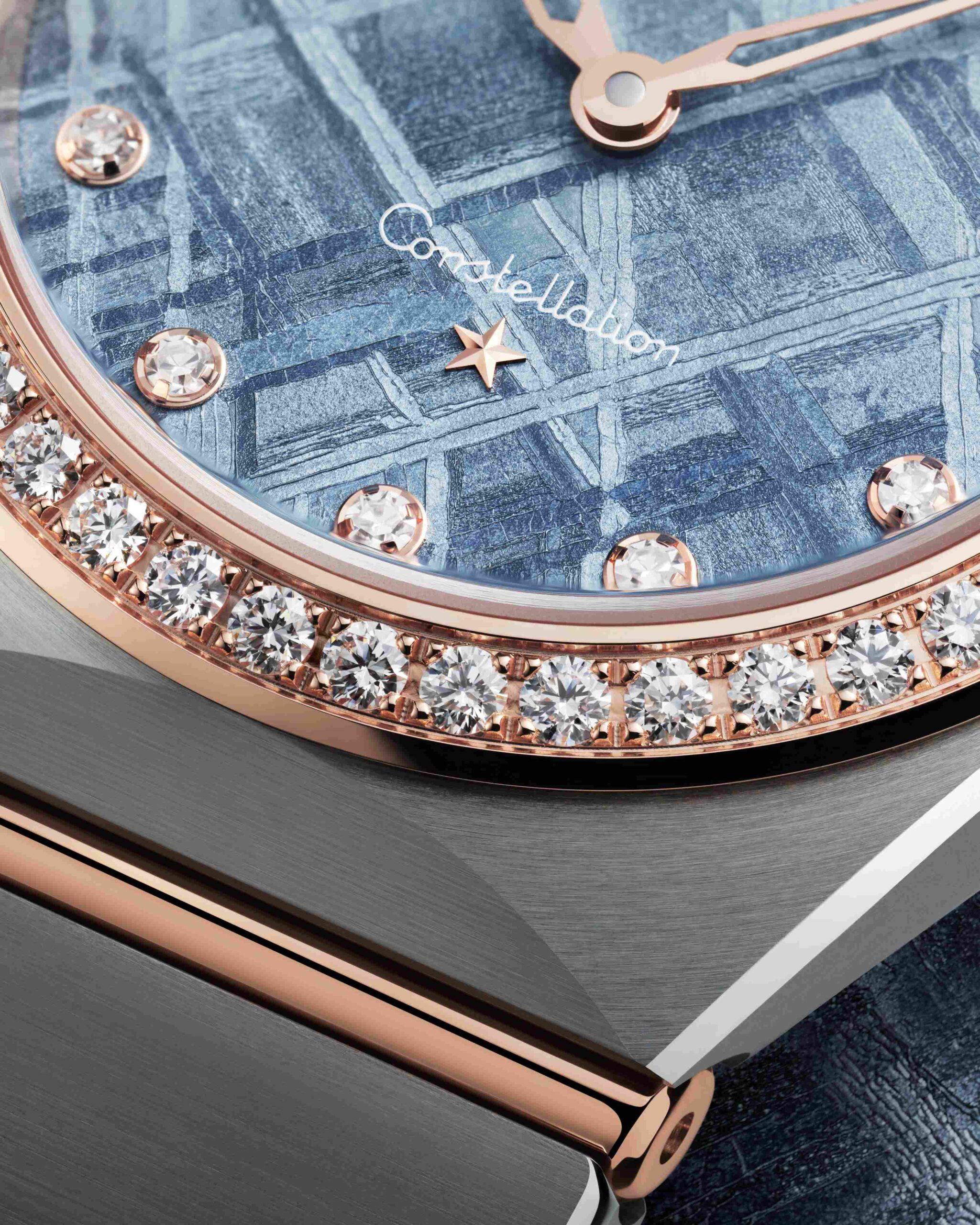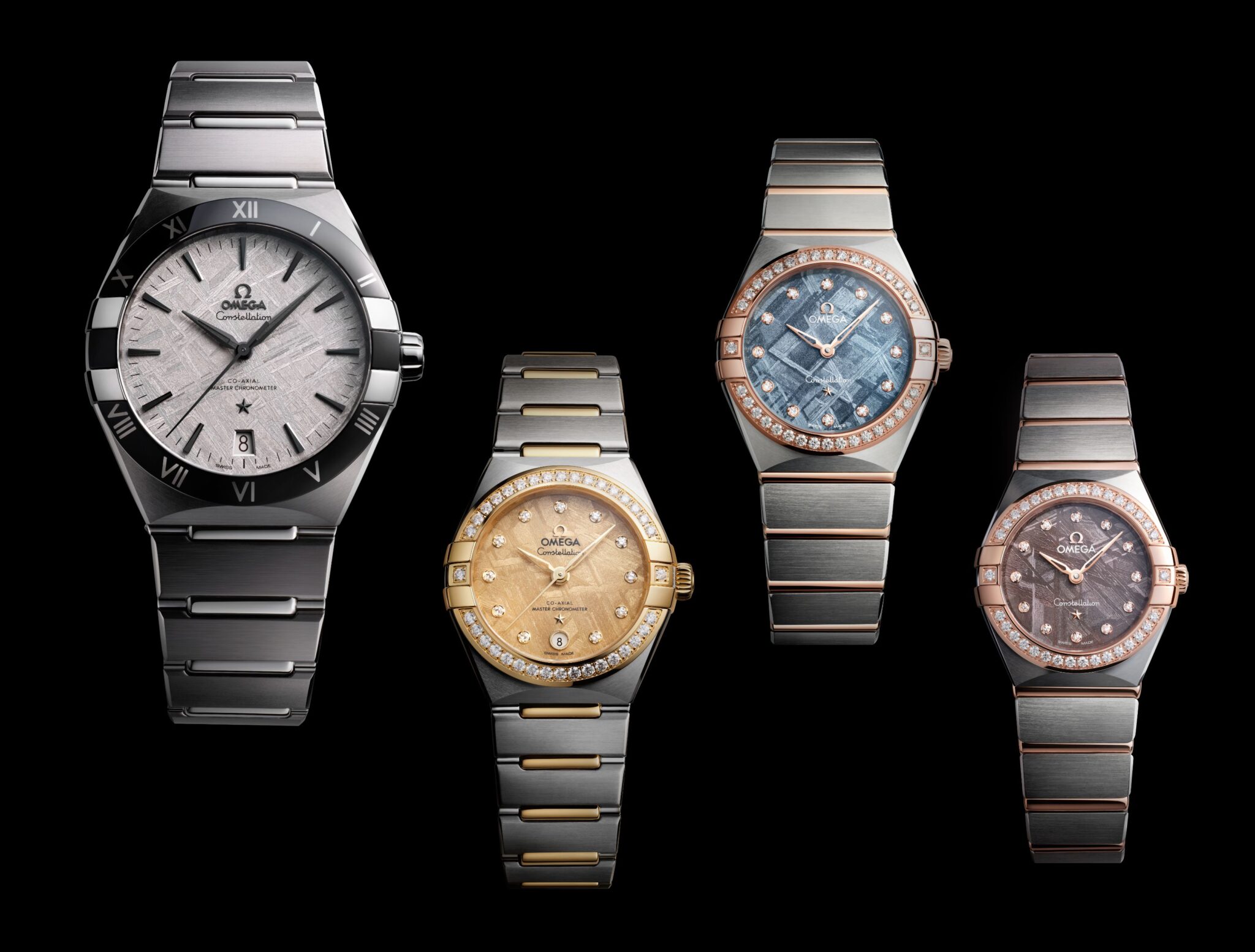 Omega Constellation Meteorite cung cấp nhiều lựa chọn. Hai phiên bản kích thước lớn nhất nhất được trang bị bộ máy Co-Axial Master Chronometer, trong đó mẫu 41mm được làm bằng thép không gỉ với vành bezel bằng gốm đen và mặt số thiên thạch có màu mạ rhodium xám. Trong khi đó, chiếc 29mm được chế tác từ thép không gỉ và vàng hồng 18k, với vành bezel và mốc chỉ giờ nạm kim cương.