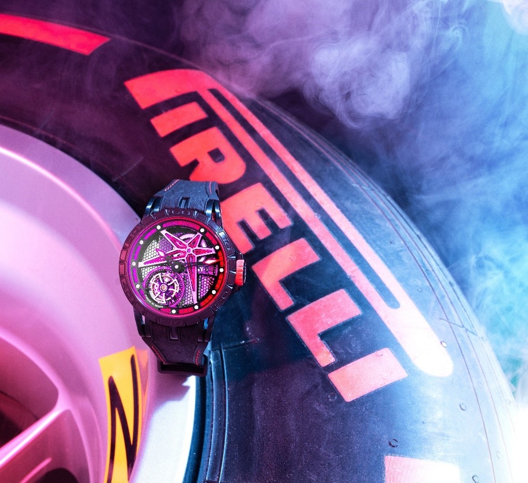 Là thương hiệu đồng hồ nổi tiếng với phong cách vô cùng mạnh mẽ và táo bạo, Roger Dubuis đã kết hợp với một trong ba hãng sản xuất lốp xe nổi tiếng nhất thế giới – Pirelli để cho ra đời thiết kế Roger Dubuis Excalibur Spider Pirelli – sự giao thoa giữa tốc độ cuồng nhiệt và dòng chảy của thời gian.