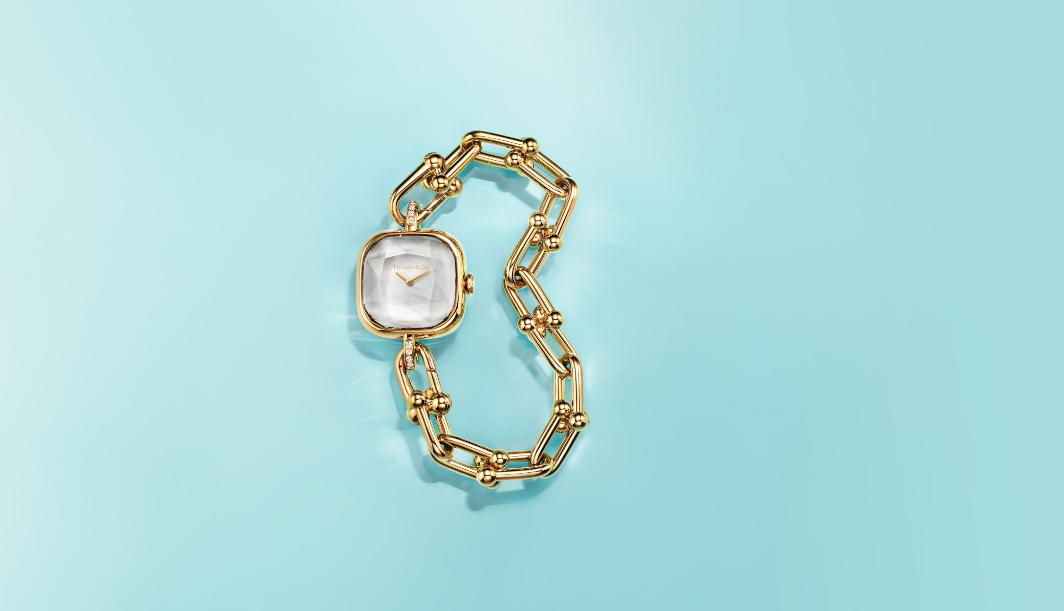 Đồng hồ HardWear by Tiffany bằng vàng vàng với mặt số xà cừ trắng