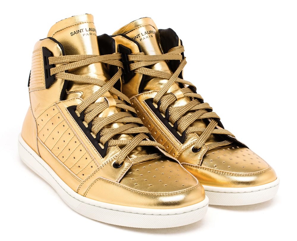 Nhắc đến Saint Laurent, bạn sẽ ngay lập tức nghĩ đến những mẫu áo da bó sát người và những đôi giày bốt đen bí hiểm. Nhưng nhà thiết kế thời trang đến từ Pháp này không chỉ biết tạo ra những sản phẩm đó, vì những ngôi sao nhạc rock cũng phải lo bị chuột rút ở chân khi nhảy nhót quá nhiều trên sàn. Dành cho những ngày thư giãn, Saint Laurent sản xuất ra những mẫu trainer vừa thời thượng, vừa thoải mái, với tên thương hiệu được phủ khắp thân giày cổ thấp, được làm từ vải canvas và có nhiều tùy chọn màu khác nhau.