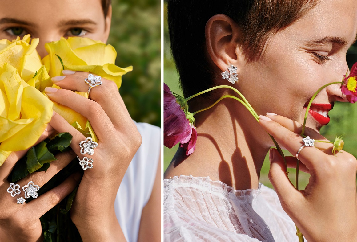 Bộ sưu tập bao gồm thiết kế hình đóa hoa đơn hoặc tổ hợp hoa mỏng manh và lấp lánh ánh sắc kim cương pavé. Dù được đeo riêng lẻ hay kết hợp theo kiểu bất đối xứng đầy phong cách, mỗi đóa hoa quý giá này đều nổi bật rạng ngời, đồng thời vẫn bổ sung hoàn hảo cho những người bạn đồng hành. Trên tất cả, chúng cùng tạo nên một tuyên bố rõ ràng về sự tinh tế và quyền lực, trong đó mọi phụ nữ đều có thể tự do “điều khiển” những viên kim cương Graff theo sở thích riêng.
