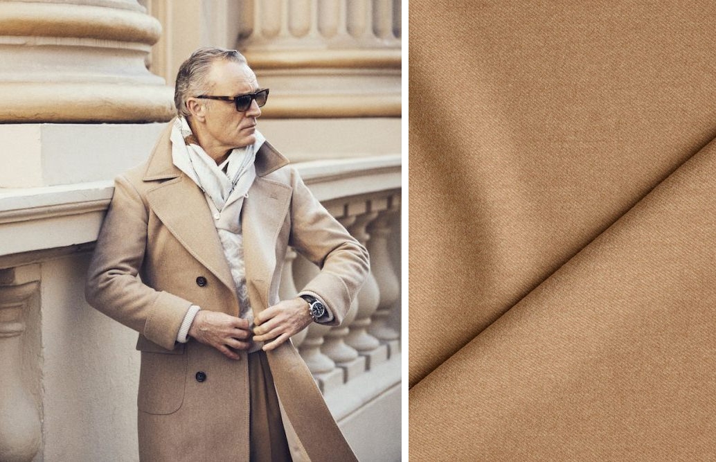 Thiết kế áo khoác dáng dài duy nhất trong bộ sưu tập lần này – Camel Twill 100% Merino lambswool là sự kết hợp hoàn hảo giữa tông màu nâu cam ấm áp, sang trọng, kỹ thuật dệt chéo tinh tế, cầu kỳ và chất liệu 100% lông cừu Merino mang đến cảm giác mềm mại, thoải mái cho người mặc.