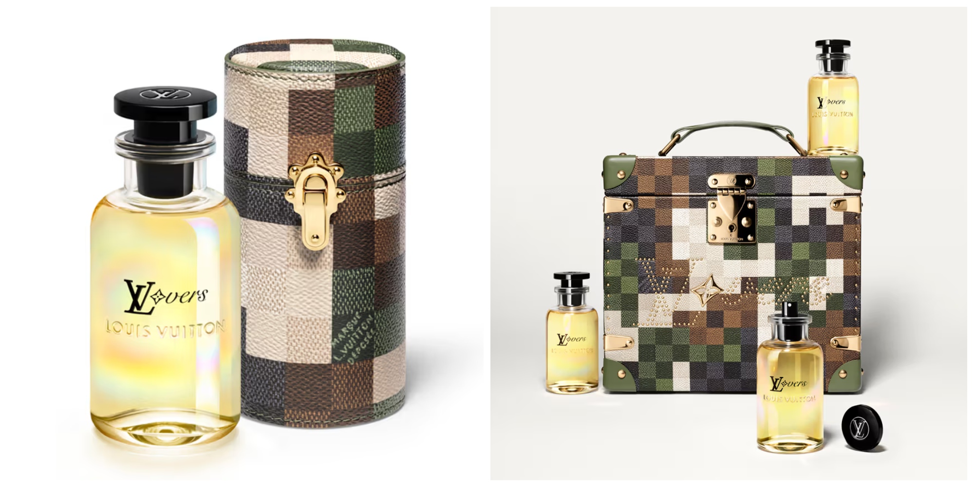 Không chỉ dừng lại ở hương thơm, Pharrell còn giới thiệu những phụ kiện sang trọng đi kèm với LVERS như vali du lịch và rương nước hoa được trang trí bằng họa tiết Damoflage, một sự kết hợp độc đáo giữa hoa văn Damier cổ điển và phong cách ngụy trang hiện đại mà Pharrell đã khéo léo lồng ghép trong bộ sưu tập đầu tay của mình.