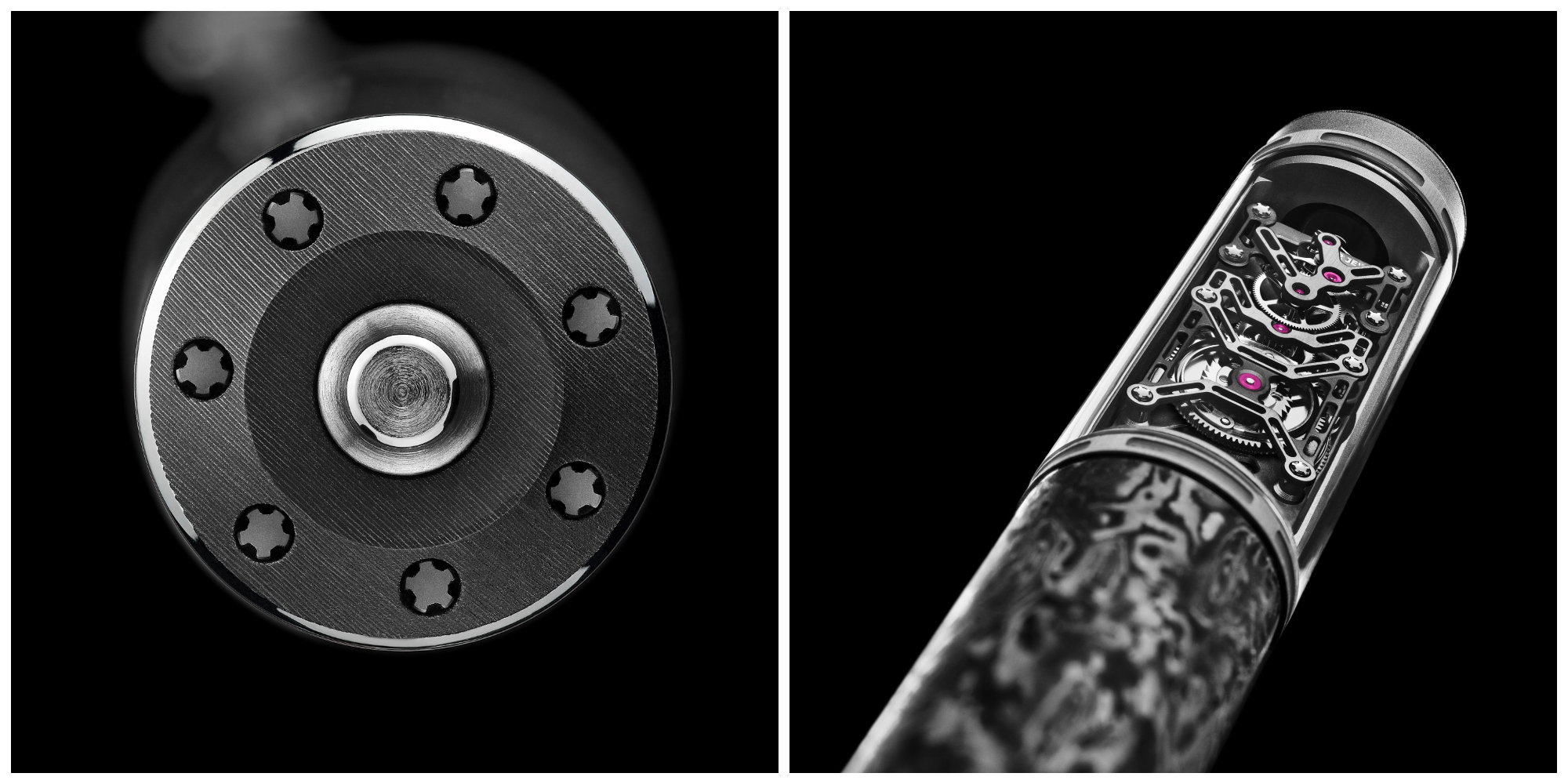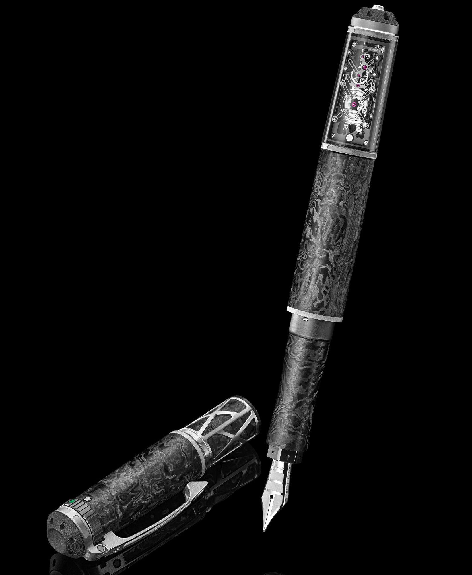 Được phát triển bởi những kĩ sư tạo ra bộ chuyển động của thương hiệu, chiếc bút này đã mất gần bốn năm để nghiên cứu và phát triển trước khi nổi lên như một sản phẩm độc nhất vô nhị, mang tính công nghệ cao. Bộ chuyển động này dựa trên một tấm đế có khung xương và các cầu làm bằng titanium cấp 5. Trái tim cơ học này với 12 chân kính tạo nên màn trình diễn quyến rũ của chuyển động cơ học giúp giải phóng phần ngòi bút chế tác từ vàng trắng.