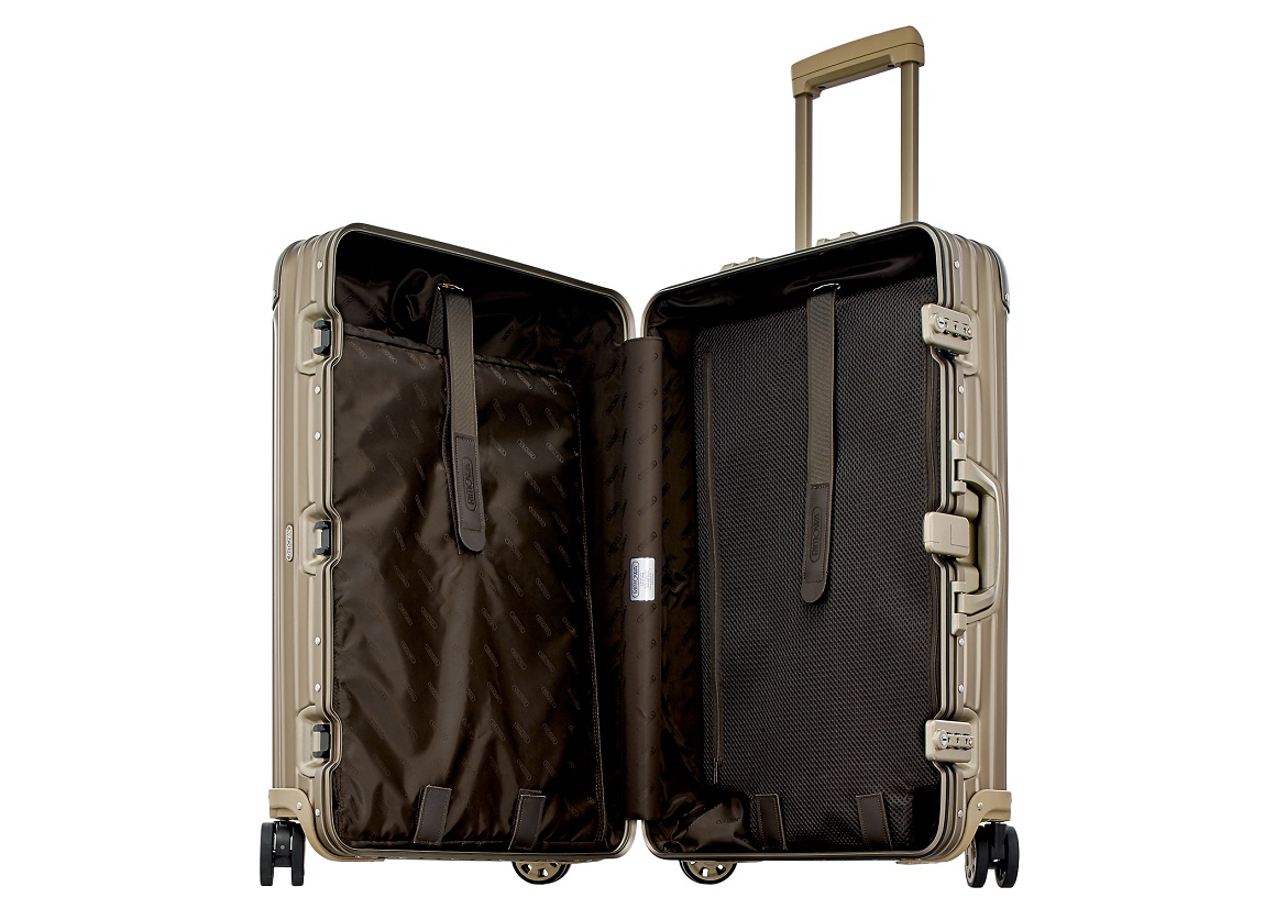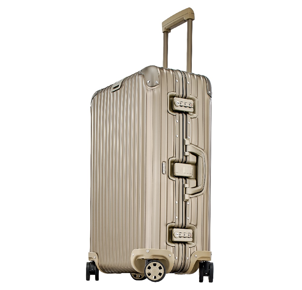 Nổi bật trong các bộ sưu tập vali của Rimowa là Topas Titanium dành cho các doanh nhân sành điệu. Với màu champagne ấm áp được làm từ chất liệu nhôm mạ titan có trọng lượng nhẹ, bánh xe linh hoạt xoay 360 độ, bên trong vali được thiết kế đơn giản nhưng rất tiện dụng với hai túi đựng giày, 1 túi đựng quần áo, các tấm lưới ngăn, tay cầm linh động, trượt nhẹ nhàng, cũng như hệ thống khóa mã TSA an toàn tuyệt đối là các điểm nổi bật của bộ sưu tập Topas Titanium. Với 11 kích cỡ để lựa chọn, chắc chắn sẽ làm hài lòng những vị khách hàng khó tính nhất để chọn lựa các size phù hợp cho những chuyến đi công tác ngắn hay dài ngày mà vẫn giữ vững đẳng cấp sang trọng của mình trên những chuyến bay.