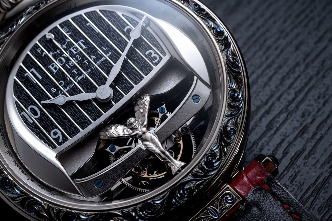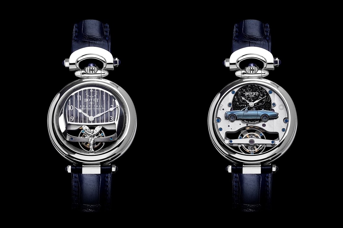 BOVET 1822 được biết đến với những chiếc tourbillion chính xác. Hãng nắm giữ một số bằng sáng chế liên quan và đã nhận được nhiều giải thưởng, bao gồm Aiguille d’Or – danh hiệu cao quý nhất của ngành chế tác đồng hồ. Đây cũng là một trong những công ty hiếm hoi trong ngành công nghiệp đồng hồ có khả năng tự sản xuất các bộ phận điều chỉnh và xoắn ốc cho những chiếc đồng hồ của hãng. Để giảm tác động tiềm ẩn do rung động từ xe, bộ máy tourbillon sử dụng các trục xoay thay vì các ổ bi truyền thống; bánh xe cân bằng nặng hơn và tốc độ dao động tăng lên để đảm bảo độ chính xác về thời gian. Cuối cùng, cỗ máy tourbillon bridge được hoàn thiện bằng tác phẩm điêu khắc biểu tượng Spirit of Ecstasy thu nhỏ, được làm thủ công bằng vàng.