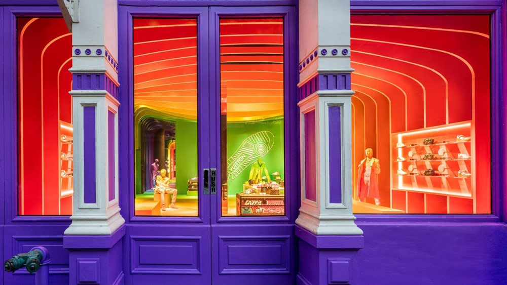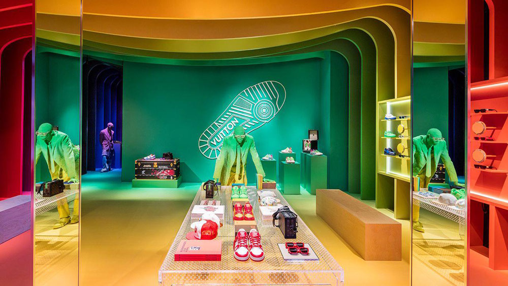Những mái vòm màu neon được lấy cảm hứng từ Pont Neuf ở Paris và dải cầu vồng sắc màu sẽ làm nổi bật nội thất của cửa hàng một cách sống động. Việc sử dụng màu sắc vui tươi đã từng tạo nên dấu ấn cho buổi trình diễn đầu tiên của Abloh với dòng thời trang nam Louis Vuitton mùa xuân năm 2019. Dường như Virgil Abloh đã liên hệ sứ mệnh của bản thân để đưa vào ý tưởng thiết kế cho bộ sưu tập lần này. Các mẫu thiết kế từ dây xích Cuba như dây chuyền và vòng tay phù hợp với từng bộ sưu tập đều được trưng bày. Tất cả đều mang sắc đỏ để phù hợp với hoạ tiết cầu vồng của cửa hàng. Một sản phẩm bán chạy khác là kính râm 1.1 Millionaires cũng được trưng bày ở cửa hàng.