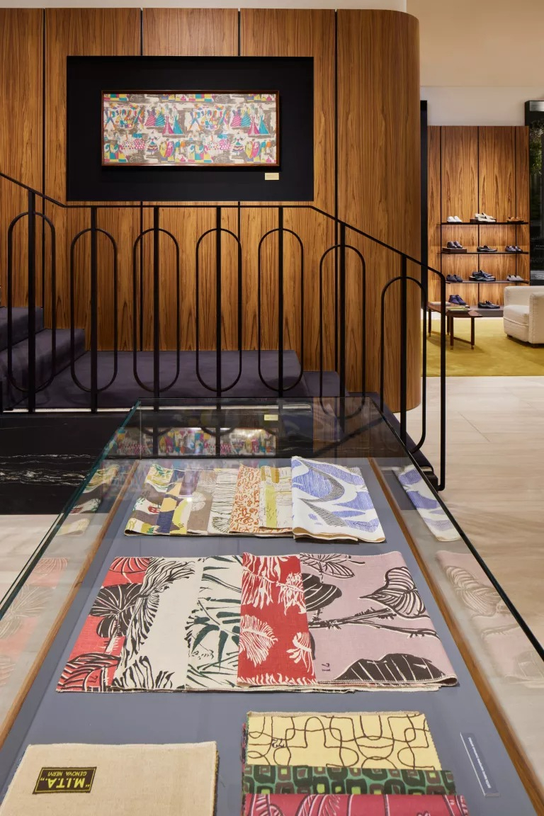 Bộ sưu tập kết hợp giữa hai thương hiệu lâu đời này thu hút đông đảo sự quan tâm của người hâm mộ bởi vẻ ngoài đầy mê hoặc, bao gồm thảm trải sàn, thảm treo tường và các sản phẩm dệt đến từ hơn 15 cửa hàng của Brioni trên toàn thế giới. Các thiết kế mô tả những họa tiết trang trí khác nhau với hoa văn mang màu sắc đặc trưng của Thời kỳ Trung Cổ. Chúng được lựa chọn kỹ lưỡng từ kho lưu trữ rộng lớn của MITA ở khắp mọi nơi. Bộ sưu tập sở hữu mối liên kết chặt chẽ với các món đồ nội thất có phong cách Ý từ những năm 1930 đến 1980. Khoảng sân dành riêng cho hai công ty được sắp xếp hài hòa để trưng bày một số tác phẩm đặc biệt, bao gồm tranh tĩnh vật, phong cảnh thiên nhiên và hoa văn hình học táo bạo.