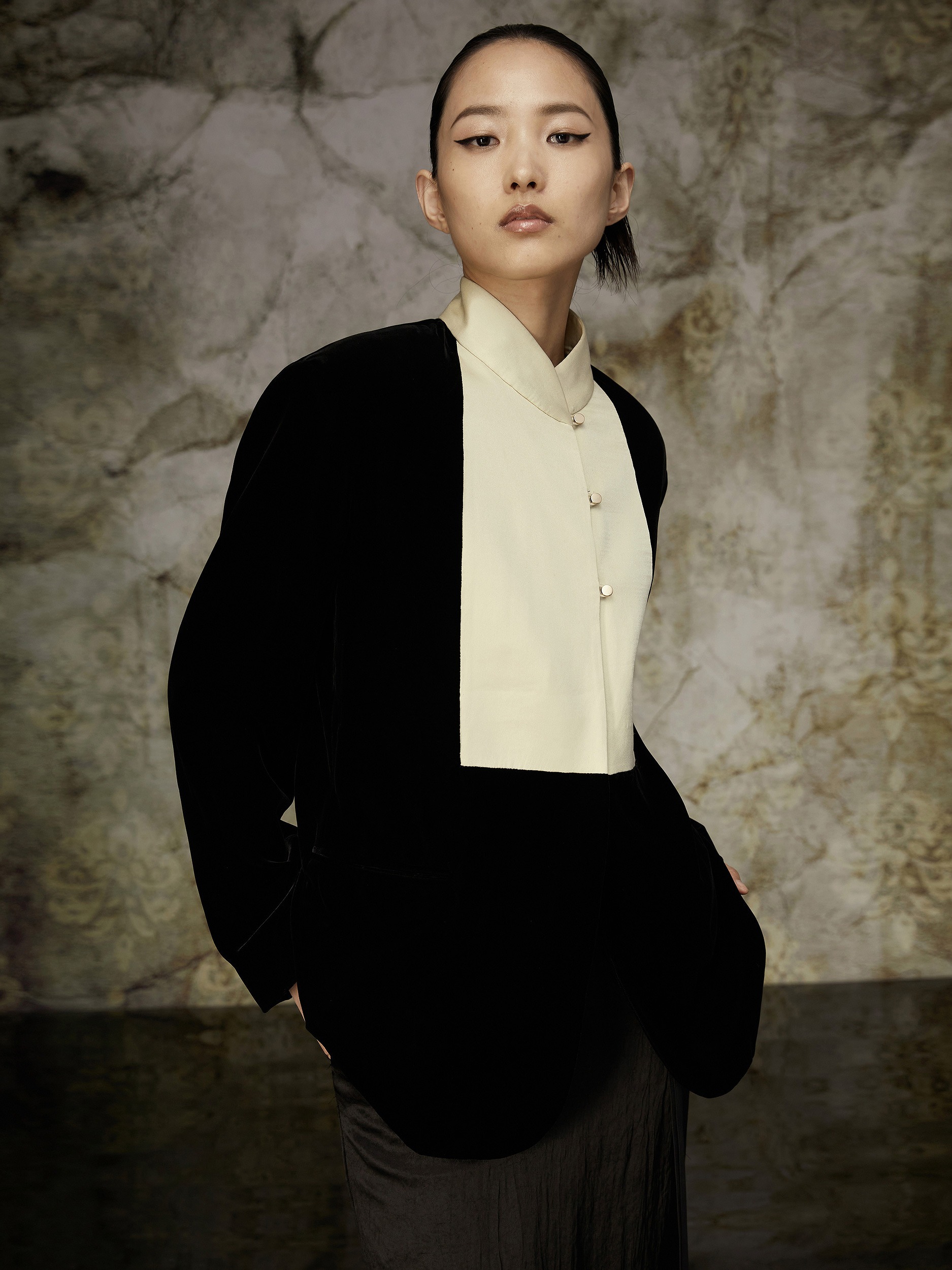 Áo khoác blazer bằng vải nhung trong bộ sưu tập The Double Song