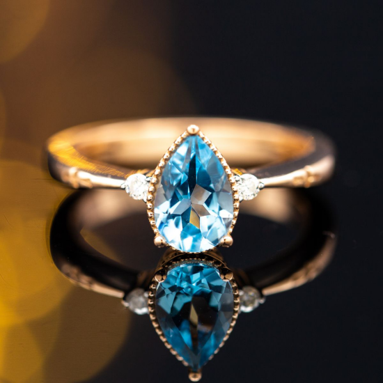 Đá topaz xanh là một trong những loại đá quý được ưa chuộng nhất. Nếu ưa thích những chiếc nhẫn có kích thước lớn, đá topaz có thể là lựa chọn tiếp theo sau thạch anh vàng. Sở hữu cho mình sắc xanh thuần khiết chứa đựng nguồn năng lượng tích cực, đá Topaz tượng trưng cho tình yêu, sự gắn kết và hòa hợp trong tâm hồn.