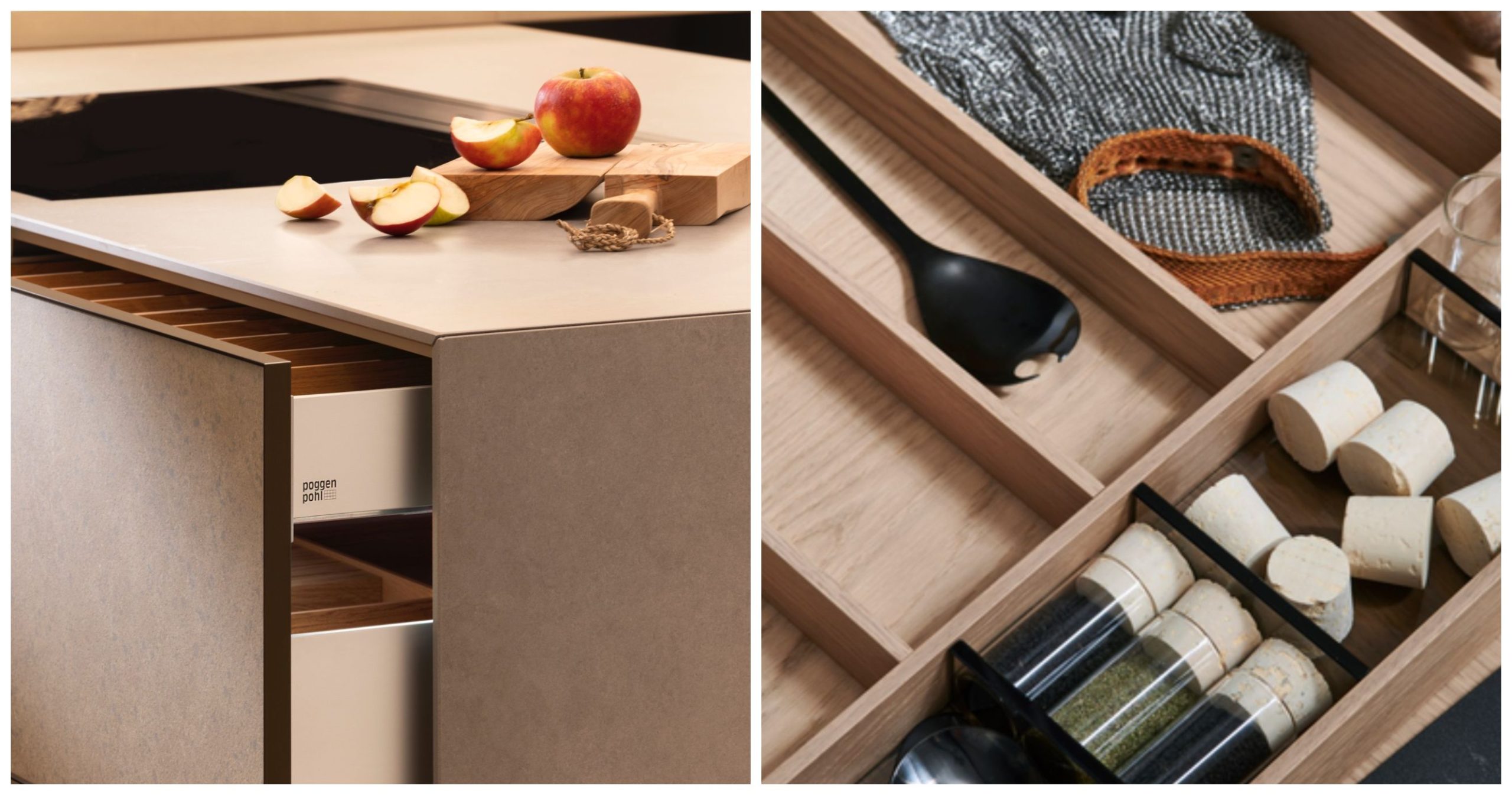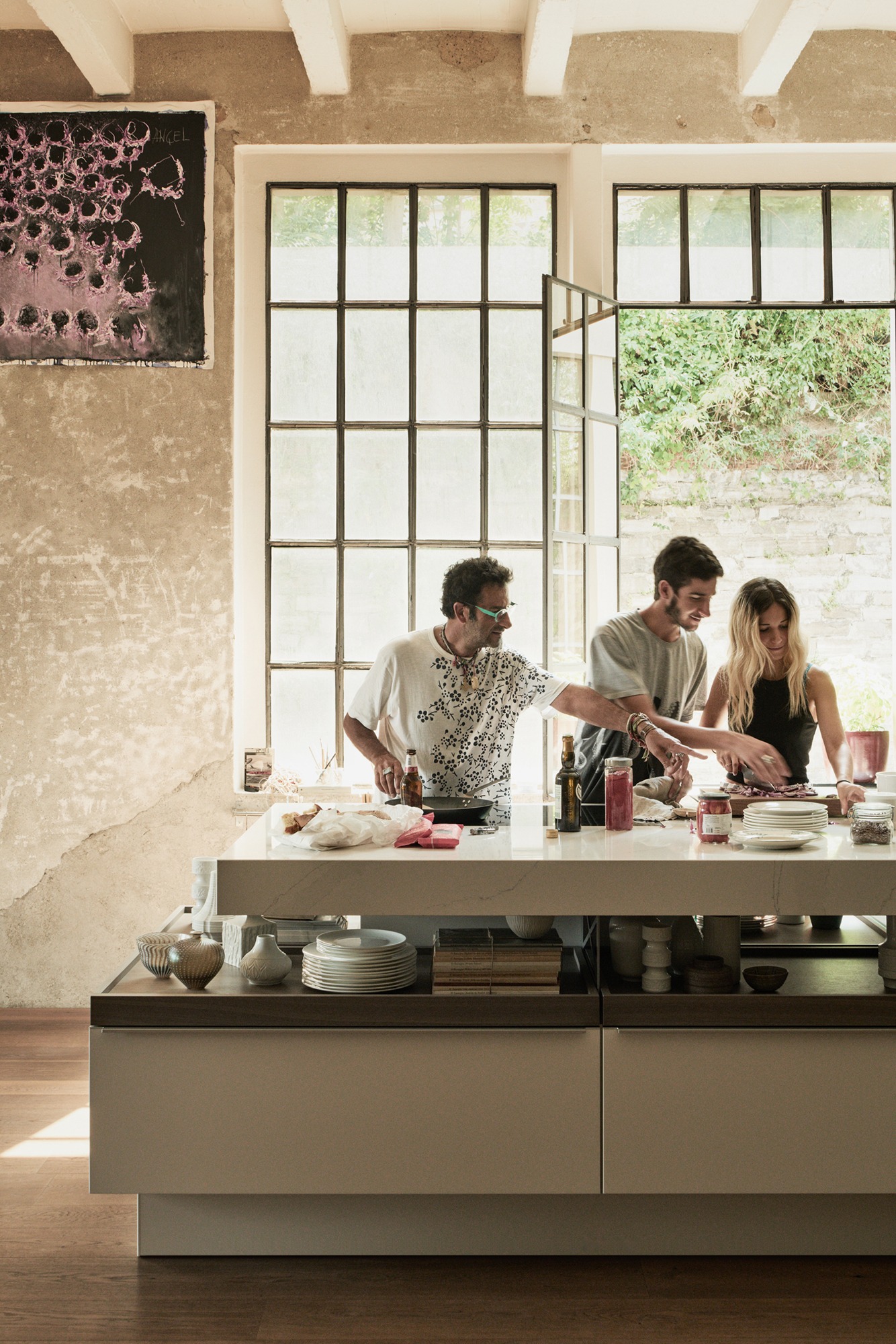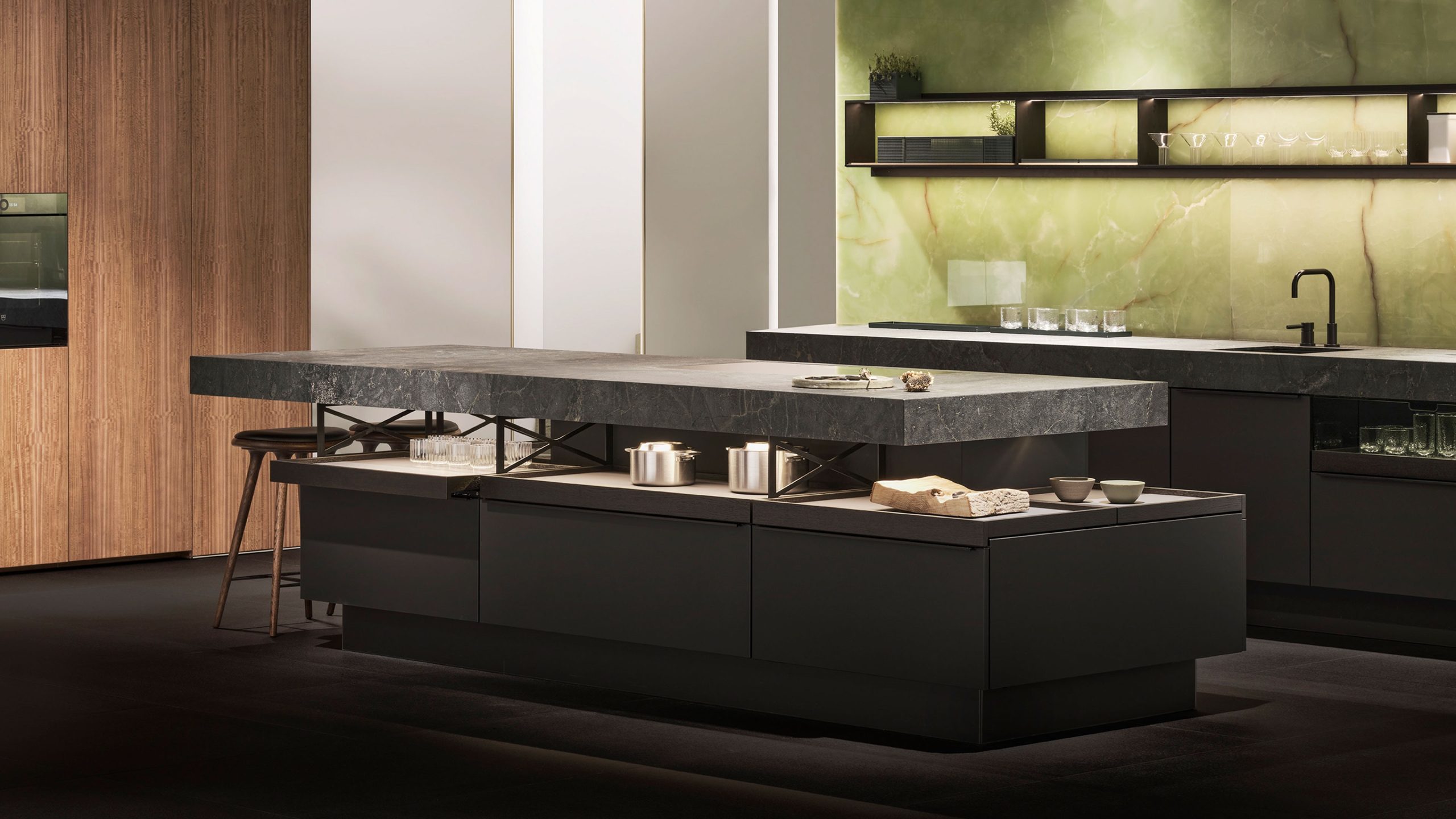 Còn, căn bếp được hoàn thiện bằng những vật liệu quý hiếm có nguồn gốc bền vững thì sao nhỉ? Poggenpohl cung cấp đá mài kết hợp với đá cẩm thạch Nero Portoro làm vật liệu hoàn thiện tinh tế cho đảo bếp, đá nham thạch thô xanh sẫm, bên cạnh mặt bàn pha lê làm từ gốm trắng có kết cấu từ các mảnh hạt tái chế. Về mặt thiết kế, các ý tưởng độc đáo của Poggenpohl phá vỡ khuôn mẫu đồng thời thỏa các xu hướng sống đang thịnh hành. Dòng sản phẩm +MODO được thiết kế bởi Jorge Pensi, khác biệt đảo bếp điển hình bằng cách dịch chuyển bàn bếp khỏi tủ.