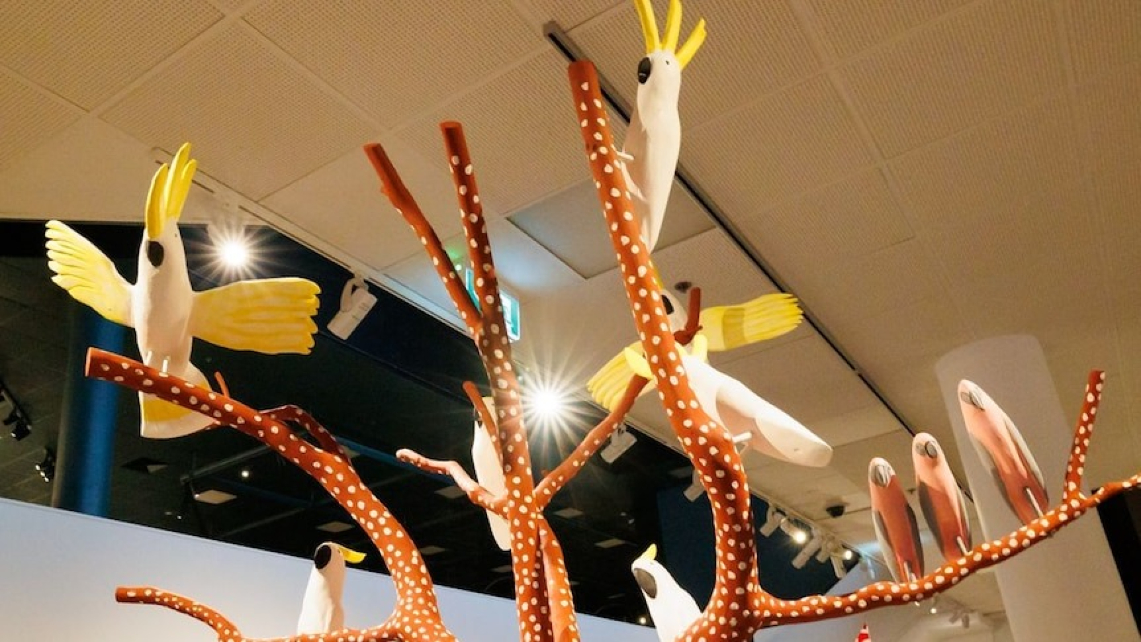 ất cả đúng như tiêu đề, Ku’, Theewith & Kalampang: The White Cockatoo, Galah and the Wandering Dog; đứa con tinh thần của nghệ sĩ Wikmunea còn mang nhiều ý nghĩa hơn thế. Tác phẩm này vừa giành được Giải thưởng Nghệ thuật Telstra trị giá 100.000 đô la dành cho Thổ dân và Cư dân đảo Torres St Eo (NATSIAA).