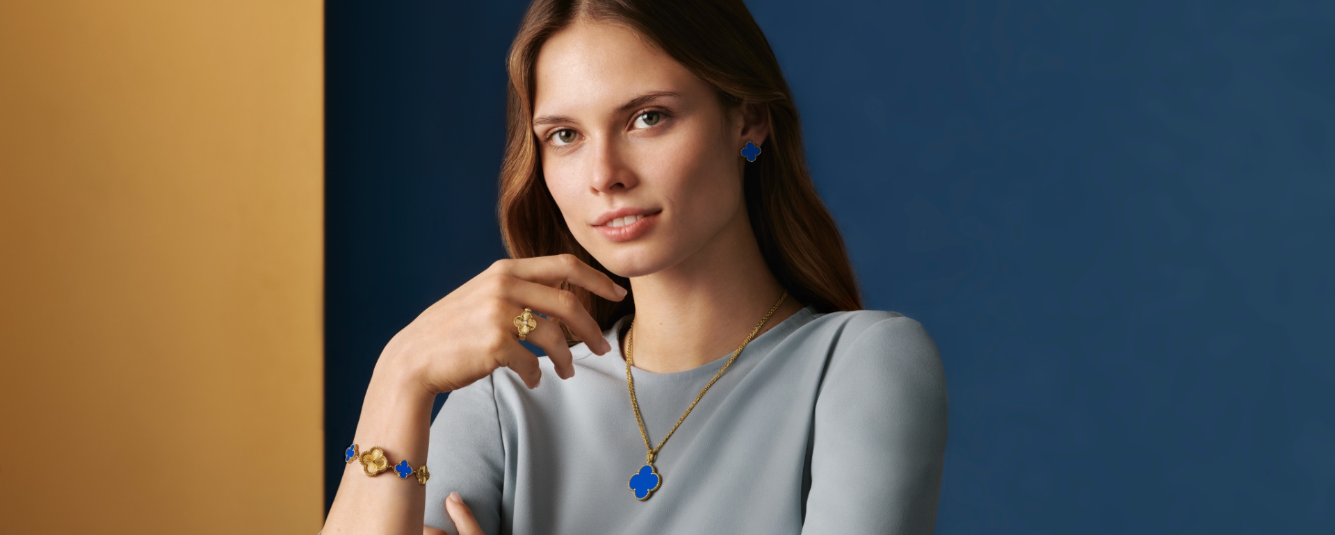 Diễn giải tầm nhìn tích cực về cuộc sống của Van Cleef & Arpels, Alhambra đã liên tục phát triển kể từ lần đầu ra mắt vào năm 1968, mang đến vô số màn kết hợp phong phú về chất liệu. Giờ đây, vẻ rực rỡ đặc trưng vàng vàng guilloché kết hợp sắc xanh thuộc về agate kiến tạo nét duyên dáng đặc biệt cho đồng hồ Sweet Alhambra và nhẫn xoay hai mặt Vintage Alhambra.
